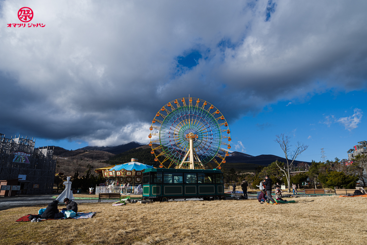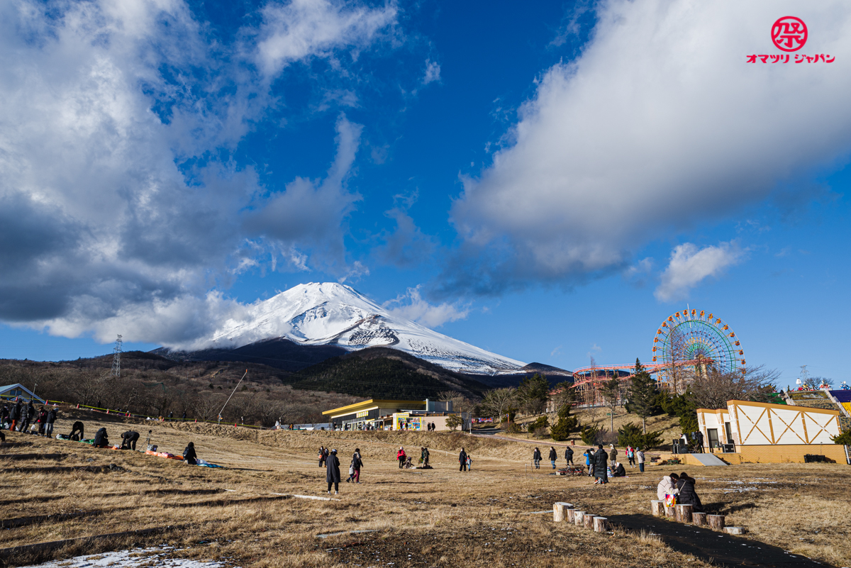 富士山+花火のコラボレーションをのびのびと撮影できるカメラ撮影エリア(ぐりんぱ自由席エリア)