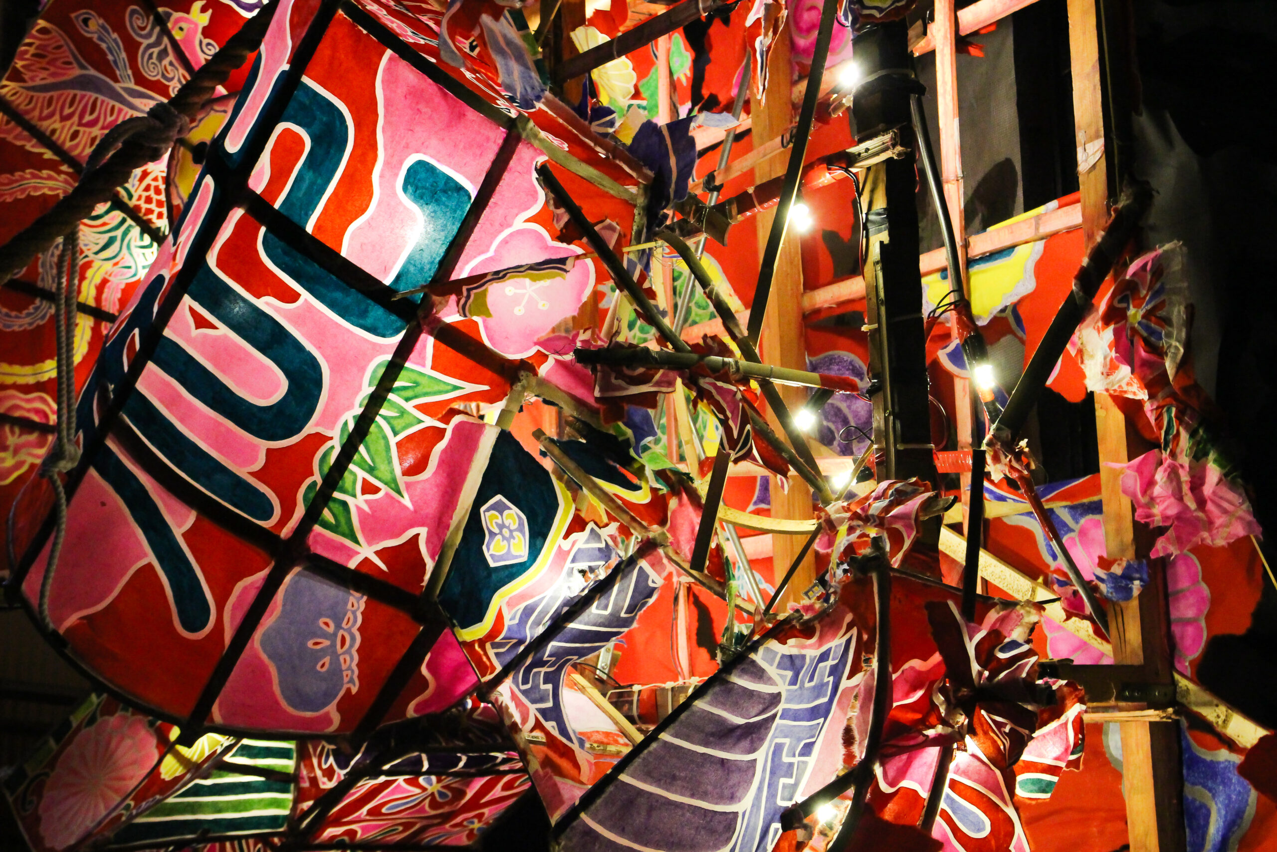 けんかを終えた大行燈はこんな姿に。けんかの物凄さを感じられますね!