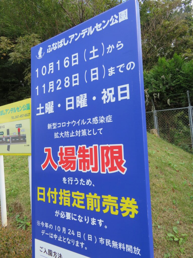 「ふなばしアンデルセン公園」に公共交通機関を利用して訪れる場合は、新京成電鉄の三咲駅から路線バスに乗車してアンデルセン公園西口の停留所で降車するのが便利でしょう。バス停には道案内の地図が掲示されています。ただ、2021年は10月16日~11月28日の土日祝日は、入場制限が行われていることに注意が必要です。コンビニなどで事前に日付指定前売券を購入しておかなければならないのです。