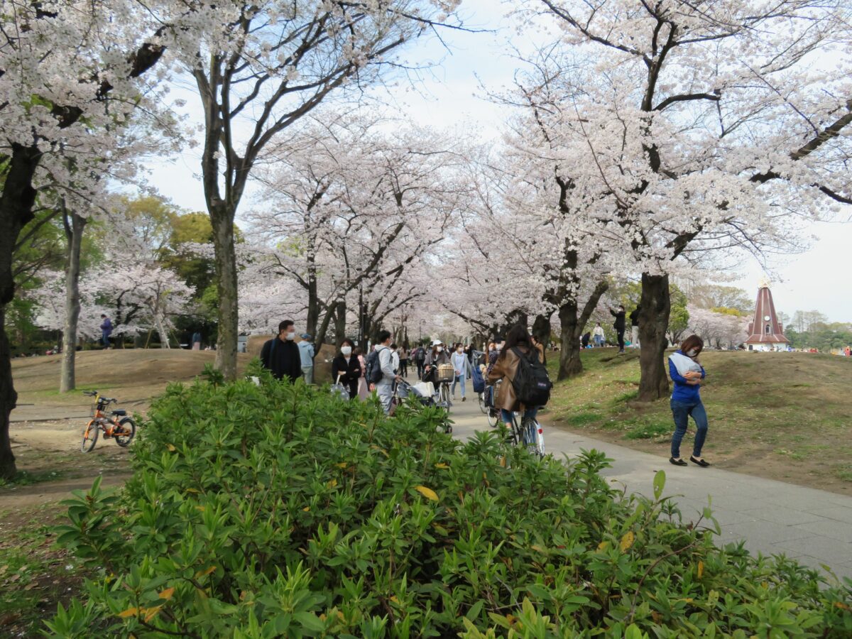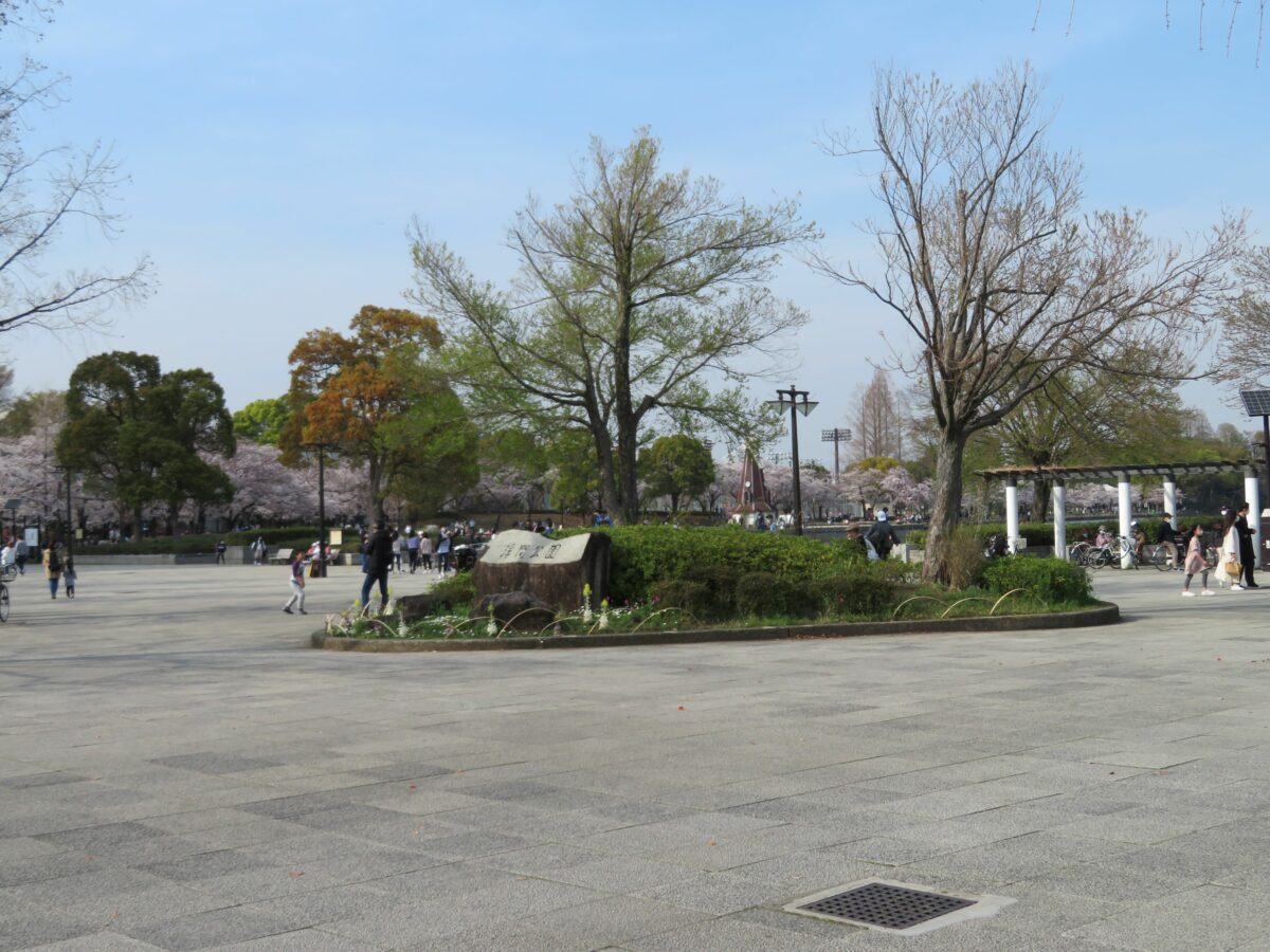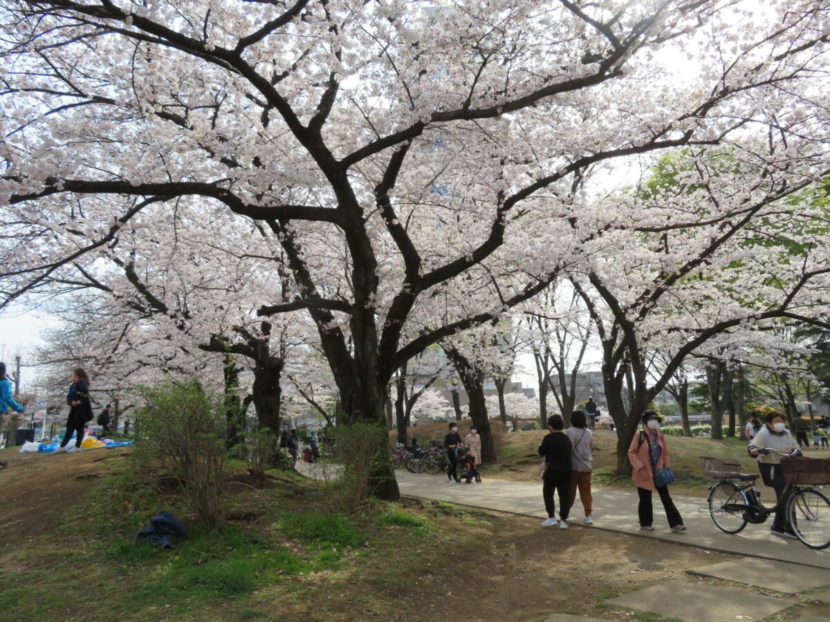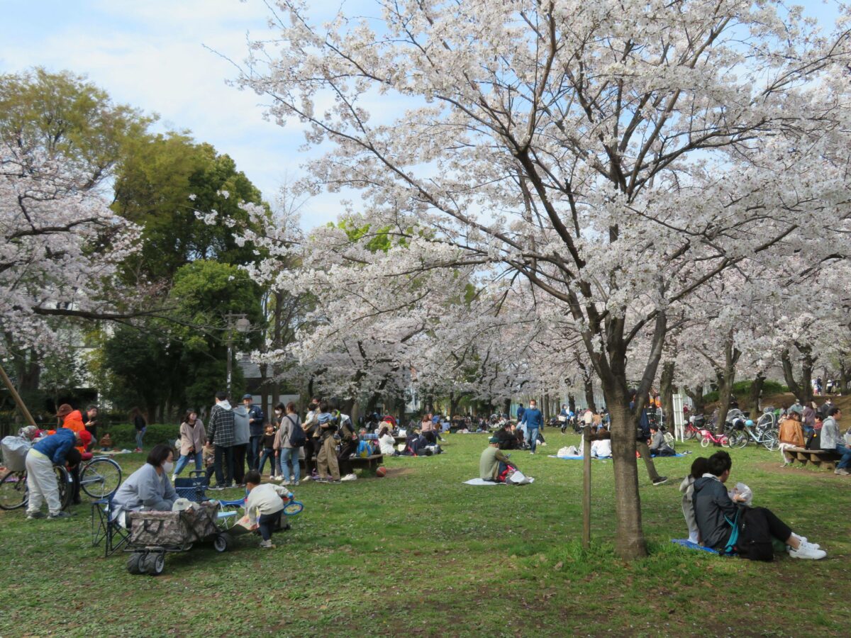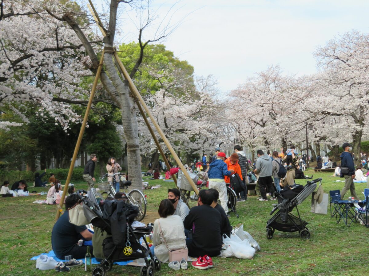 浮間ヶ池の西には芝生広場が整備されています。広場はソメイヨシノで縁どられ、レジャーシートを敷いて桜の花見を楽しむことができます。