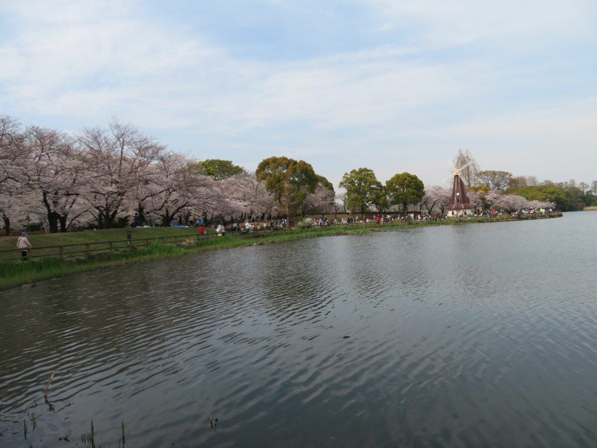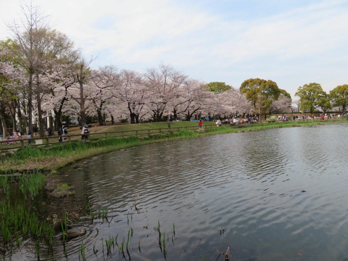 桜で全周が囲まれる公園中央の浮間ヶ池