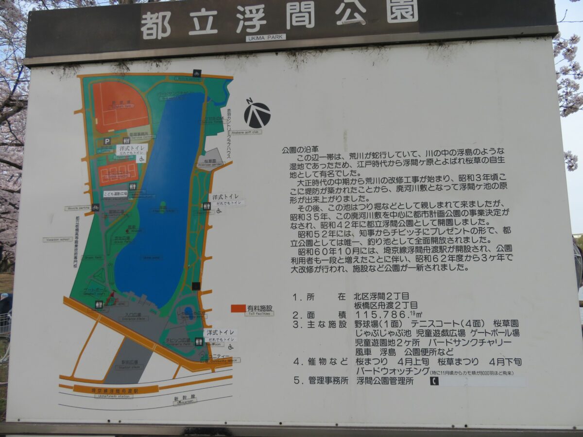 浮間公園に公共交通機関を利用して訪れる場合、JR埼京線の浮間舟渡駅が最寄り駅となります。改札を出た正面が、公園の入口広場です。