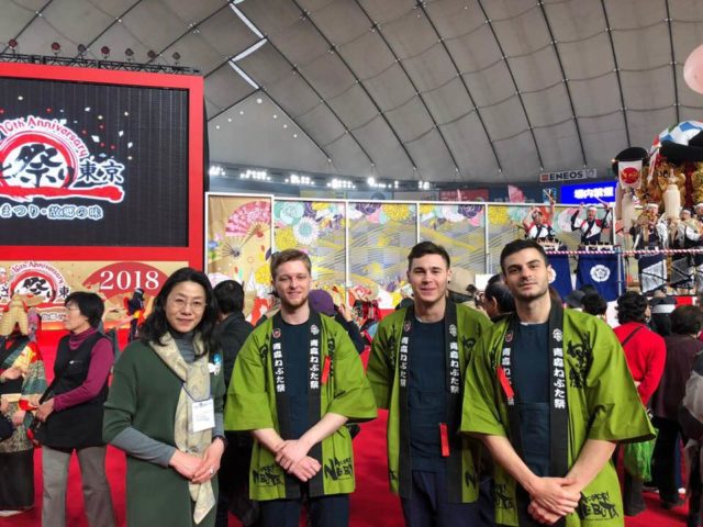特に日本を代表するTHEお祭りの青森ねぶた祭。闇の中に極彩色の光を放つ勇壮華麗な「ねぶた」、幻想的で活気のあるお囃子、「ラッセラー、ラッセラー!」の掛け声と共に演舞する跳人(ハネト)の三位一体感がたまりません。というわけで今回オマツリジャパンでは、青森市役所さん、ねぶた関係者と協力して、ねぶたの曳き手(ねぶたの運行をする人)を外国人と日本人の国際交流をしながら毎日やっています。これぞお祭り×インバウンドの体験型のツアーです。その模様を写真と共にレポート!