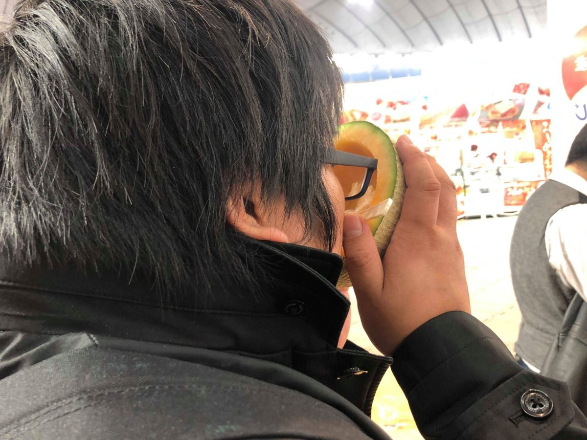 最後は青森のブースでは実物のリンゴを使った見事なフォトブース