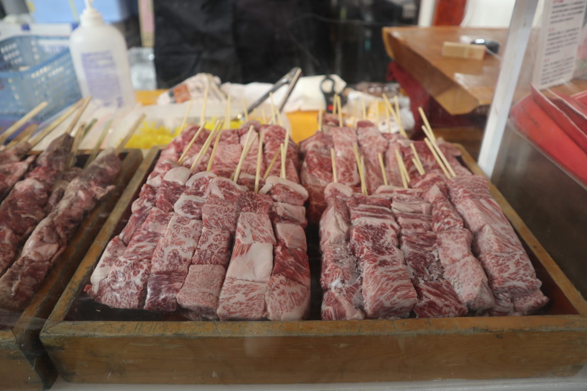 米沢牛、神戸ビーフをはじめ、日本全国から様々なブランド牛が勢ぞろい。串焼きに丼、肉寿司まで、あらゆる食べ方を楽しむことができます。