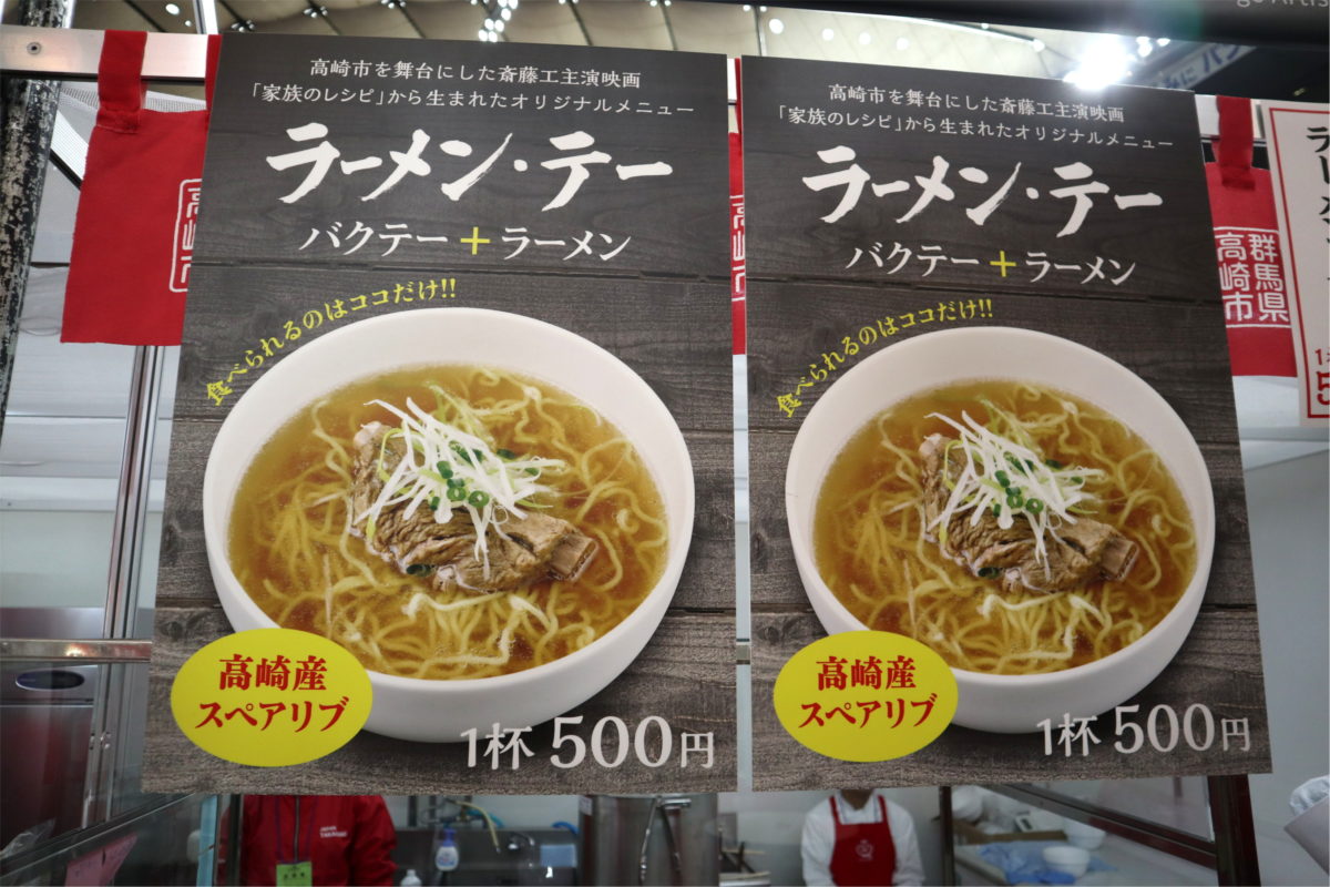 群馬県 上州・高崎のご当地グルメが並ぶ「開運たかさき食堂」エリアでは、話題のバクテーラーメンが登場。斎藤工主演、高崎市が舞台となった映画「家族のレシピ」に登場し、シンガポールのソウルフード「バクテー(肉骨茶)」と日本のラーメンを融合した「ラーメン・テー」 最近は関東のそばチェーン店が「バクテーそば」を販売し話題となったばかり。胡椒の利いたスープに、大きな高崎産スペアリブが乗っかった一品です。