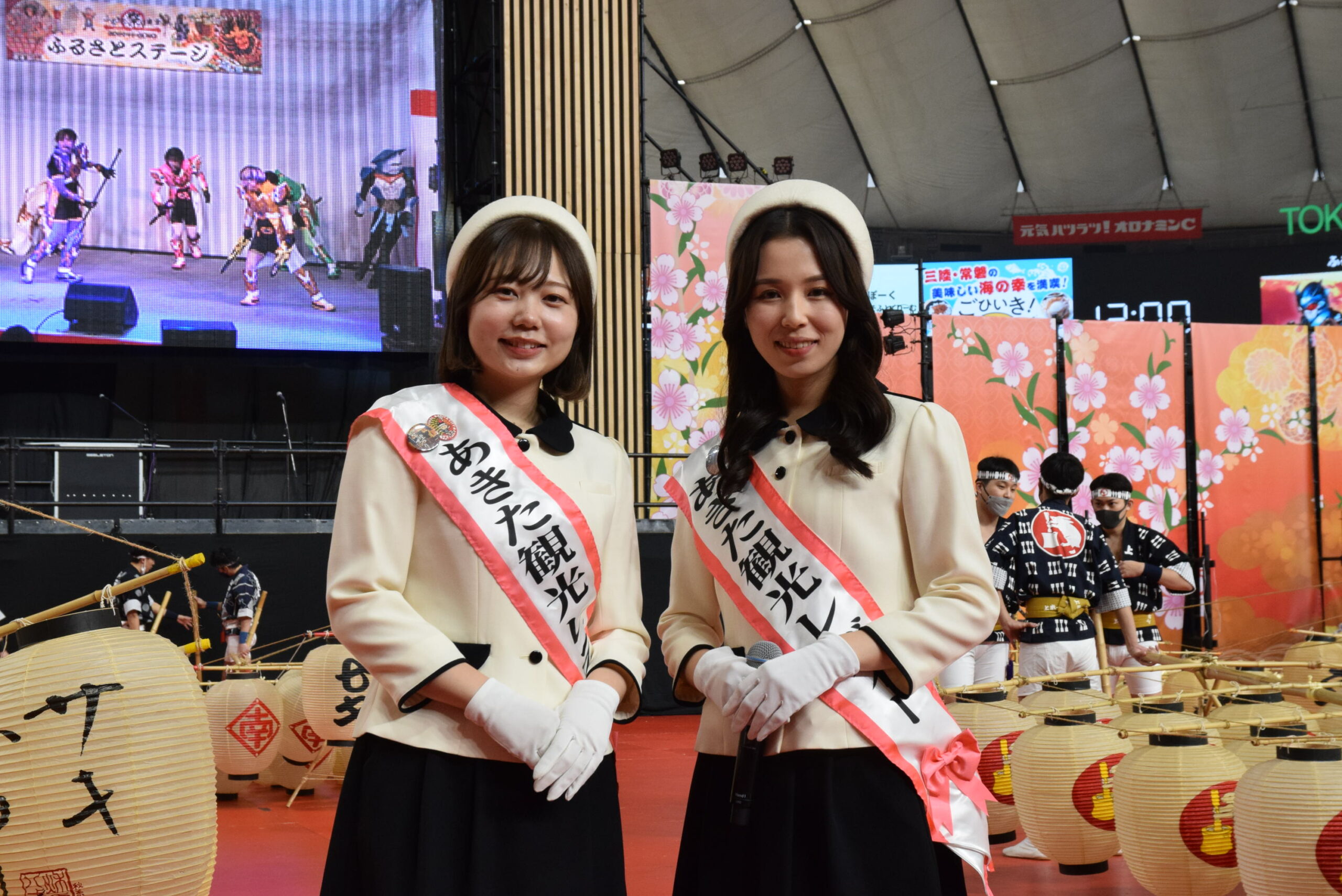 今回、秋田観光レディーのお二人が「ドッコイショー、ドッコイショ」の掛け声を担当。コロナ対策のため、観客は声を出さず掛け声に合わせて手拍子で応援します。