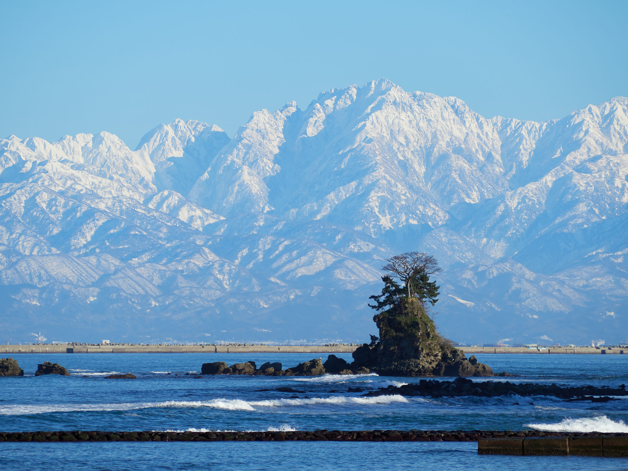 富山県のもう一つの特徴、それは「冬が長い」ことです。気候は日本海側気候に属し、豪雪地帯に指定されています。風上の能登半島が風を弱めるため雪雲が停滞しやすく、深く重い雪は長い年で5月まで残ります。