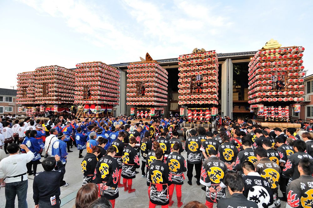 戦闘形態である提灯山に変身した曳山が勢揃いする様子はまさに圧巻