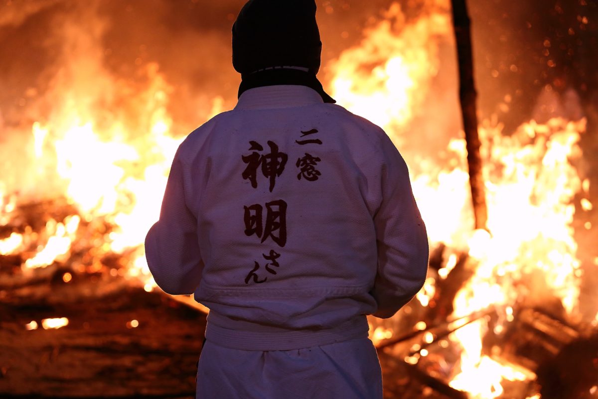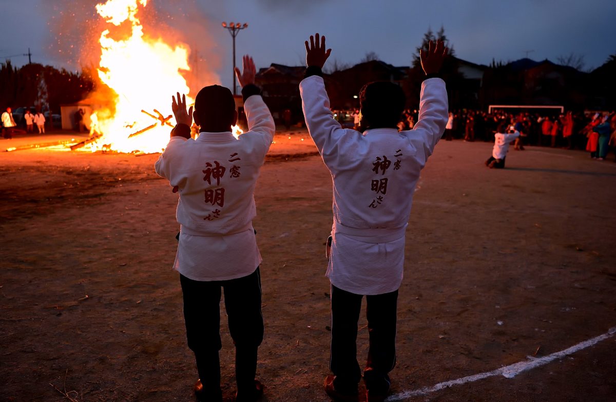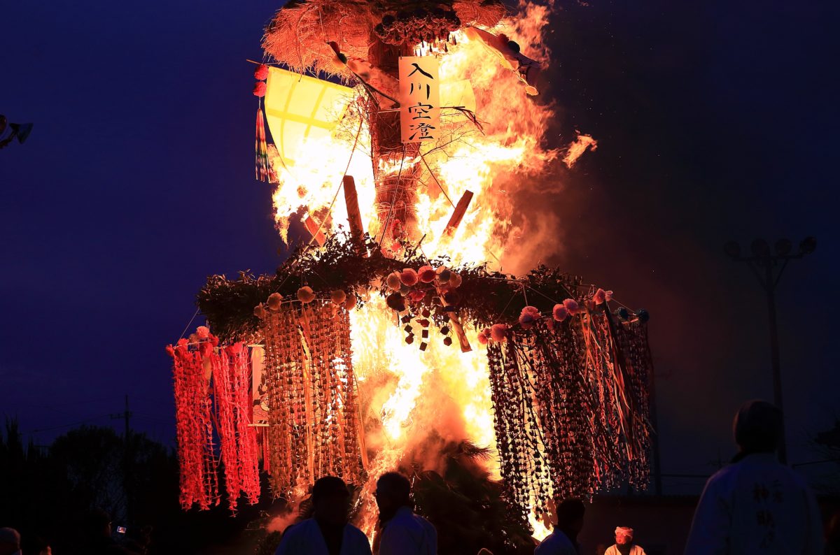 さあ時間です、お楽しみの神明さんに点火します、1年間の地域の火難がおきない事を願い、無病息災、家内安全をみんなでお祈りします。