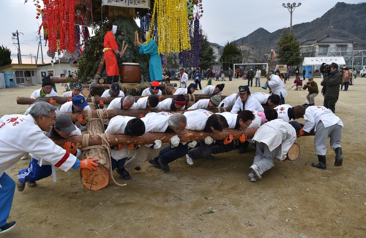 そうです、シンプルに練り歩き、持つところも松の大木です!力を一つにです。