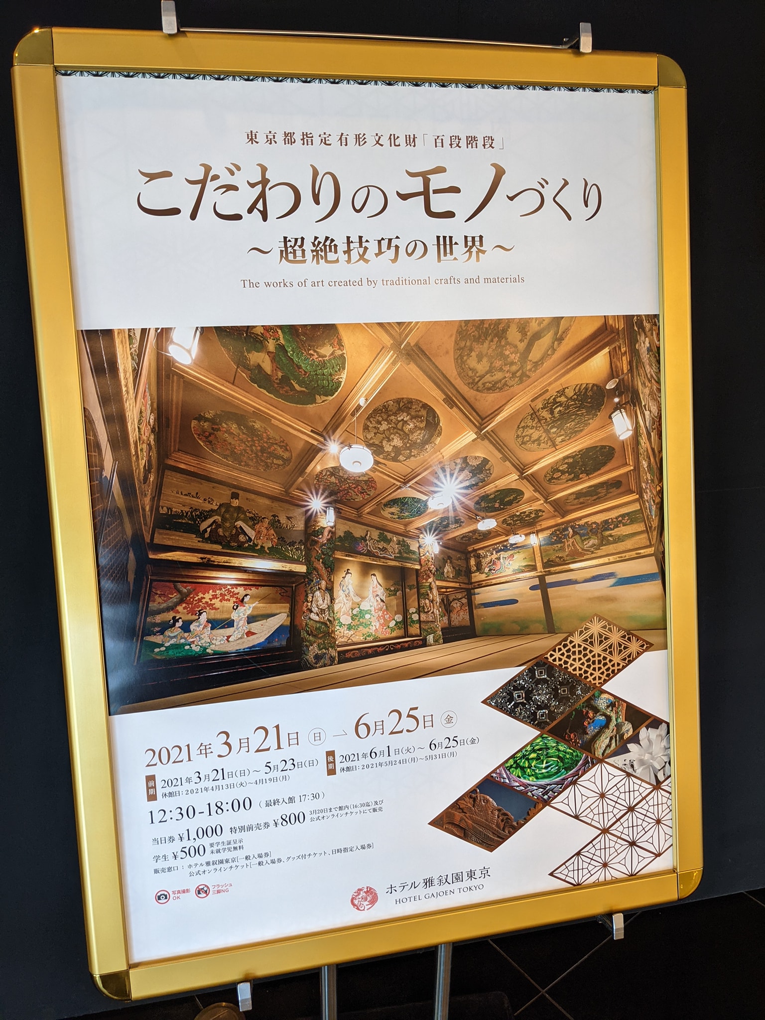ホテルからは景色や作品を中心とした芸術的な部分を中心におススメ頂きました。エントランス付近には百段階段(雅叙園で現存の木造建築)や、旧目黒雅叙園の様子を知ることのできる資料も展示してあり、そこからはじまり様々な美を紹介頂きました。