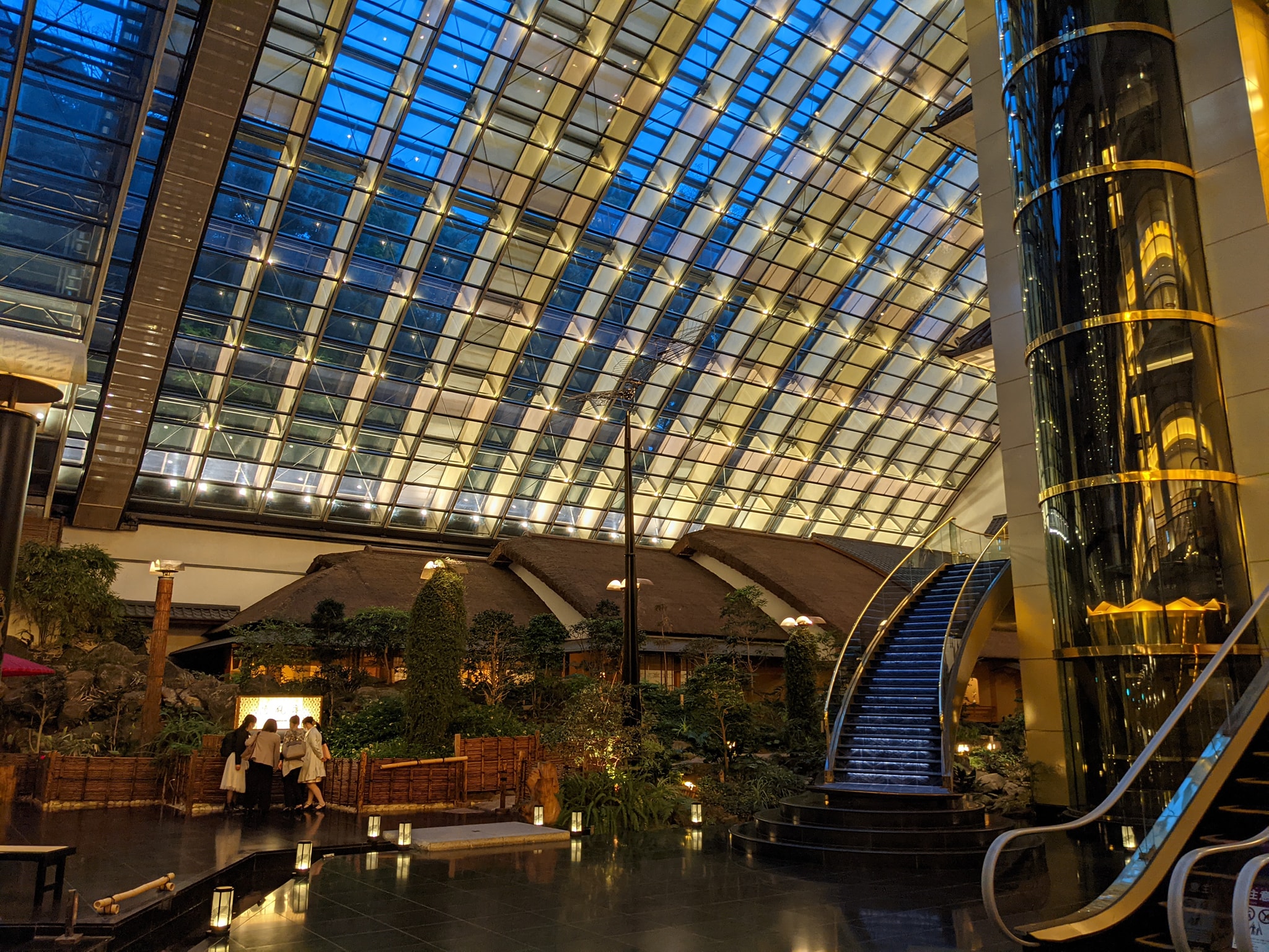 ホテルの中の萱葺き屋根は、日本料理「渡風亭」