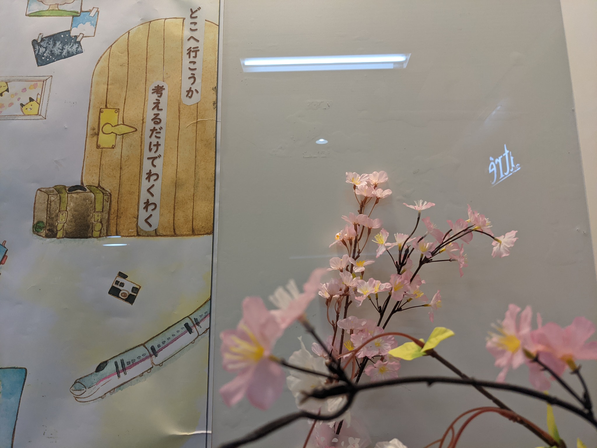 JR目黒駅の桜の装飾。駅のあちらこちらに桜を楽しめる工夫がされていました。atreの装飾も豪華絢爛でした。