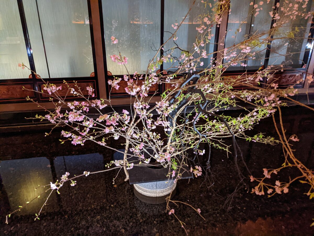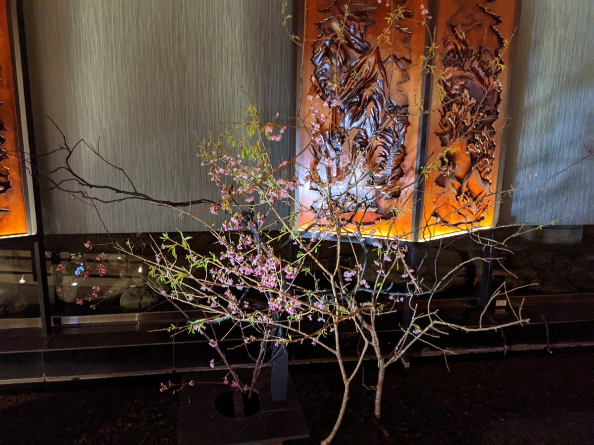 ここからは本題の桜の様子を写真で見て行きたいと思います。ホテル館内のアーティスティックな桜から、屋外の桜の様子まで写真でお楽しみください。またあわせて目黒川の桜の様子もご紹介します。日が暮れた頃に撮影したものもあり、快晴の時に満開の桜と言ったものではありませんが、15日の様子と31日の様子の対比を写真でお届けします。