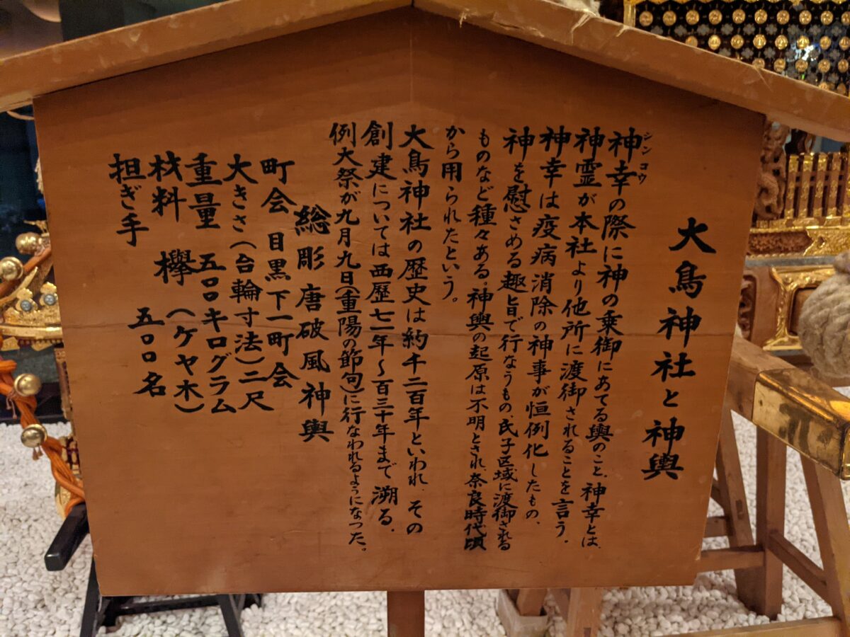 大鳥神社の御神輿だそうです。ホテル雅叙園東京の中に置かれていることで、一層豪華絢爛に見えます。