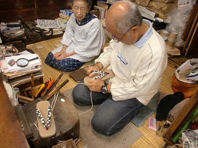 丸屋さんのような下駄専門店で買えば、足当たりがよい鼻緒を選んでもらえるばかりか、足に合わせて調節もしてくださいます。古い下駄、お下がりの下駄も鼻緒をすげ替えれば快適に掃くことができます。