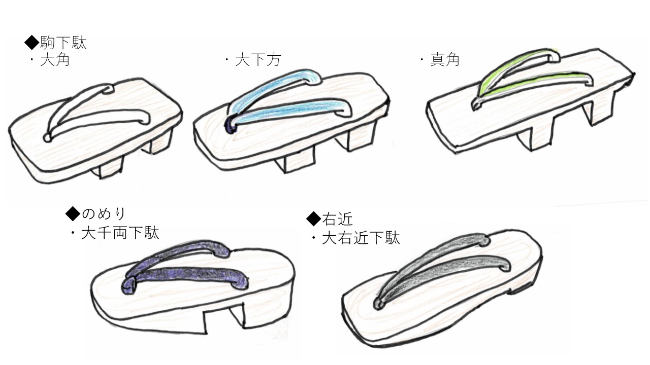 ・大千両下駄:前歯を斜めにカットしたもの。歩きやすいがやや重い。