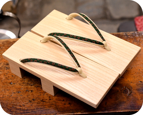 もっとも一般的な下駄の素材は桐。軽く、硬く、木目が美しいという特徴があります。