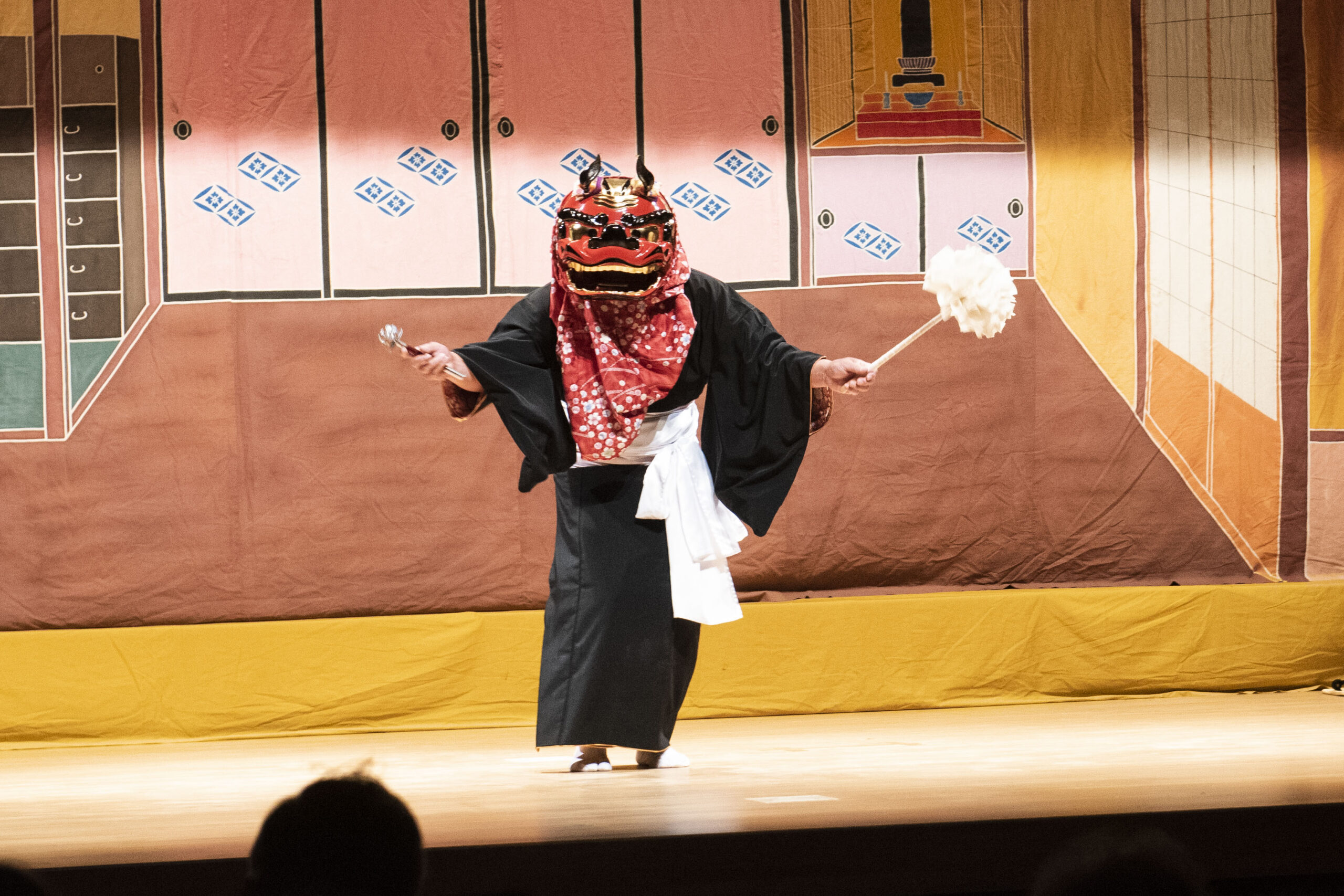 今回伺った岐阜県岐南町の公演では、伏屋獅子舞保存会(岐南町)、関市獅子舞保存会(関市)、岐阜歌舞伎保存会(岐阜市)の3団体を拝見できた。最初の2団体が獅子芝居の公演、もう1つの団体が地歌舞伎の公演を行うという内容だった。それぞれの団体の演目について紹介しよう。