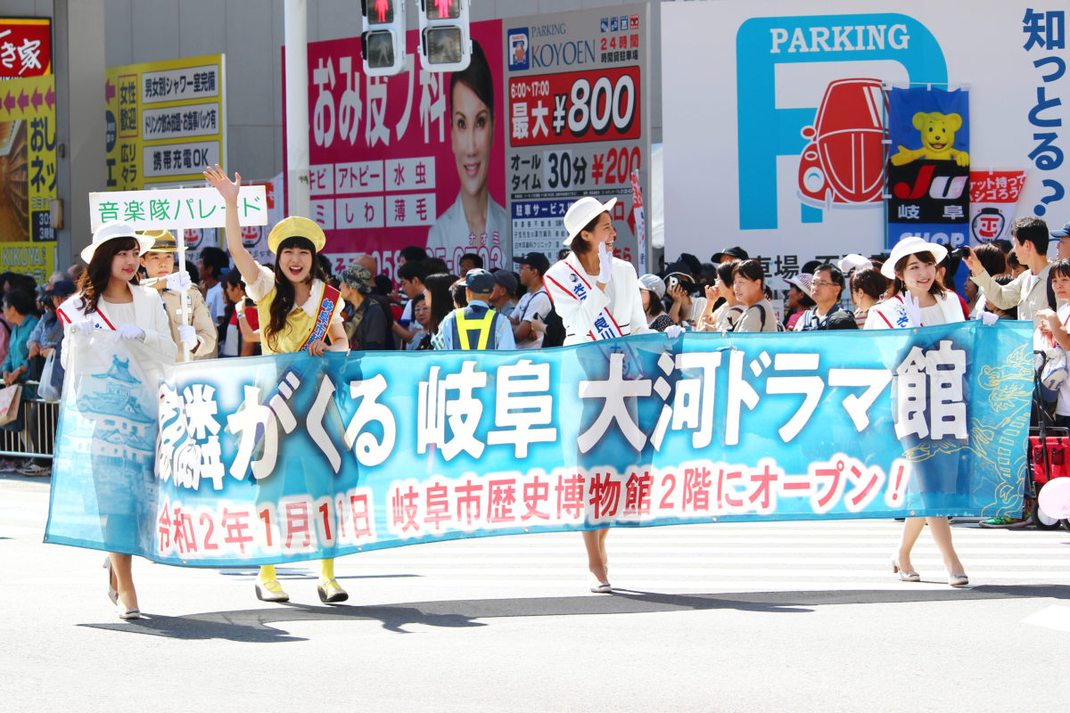 行列の先頭を務めるのは、ぎふ長良川メイツと岐阜市観光宣伝隊の皆さんです!