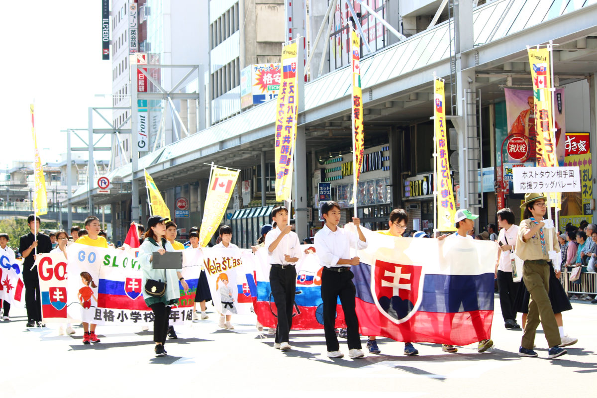 続いて「ホストタウン相手国応援フラッグパレード」の行列です。来年の東京オリンピック・パラリンピックに向けて、スロバキア、カナダ、コートジボワールの受け入れを行っているんだとか。