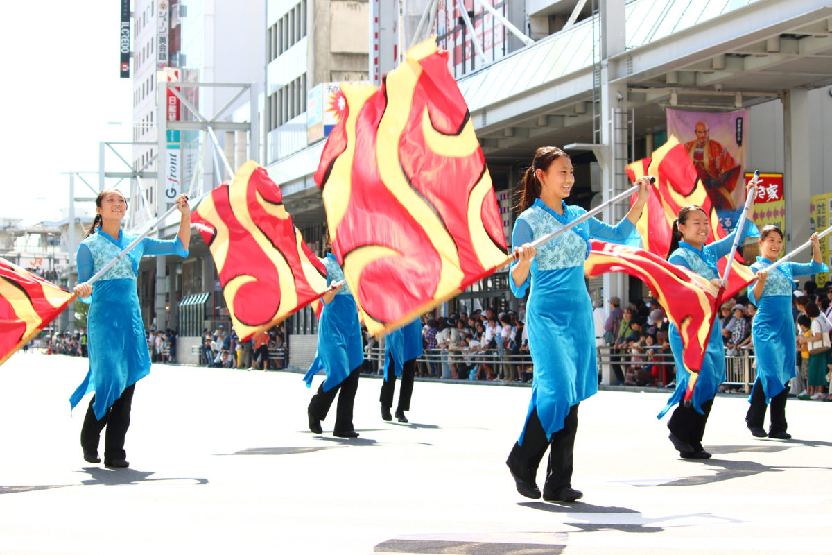 お祭りの舞台は岐阜市街地一帯とポスターに書かれているように、早速岐阜駅前でイベントが行われていました!岐阜濃Know姫隊によるパフォーマンスです。