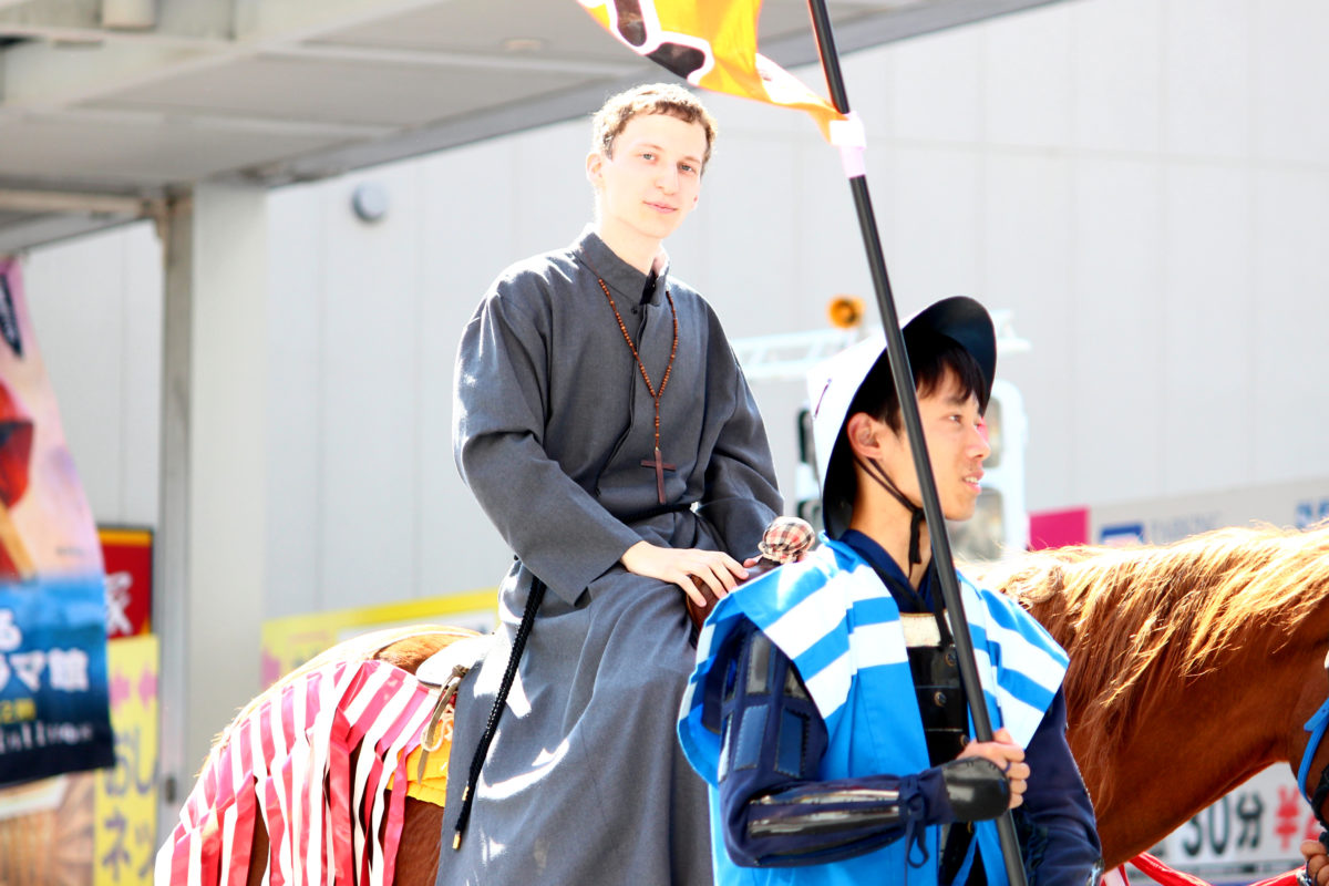 光秀公の後ろからは信長公もやってきました!例年では信長公役に芸能人の方がなりますが、今回は来年の大河に合わせてチェンジしたそうです。南蛮風のマントと甲冑がカッコいいですね!