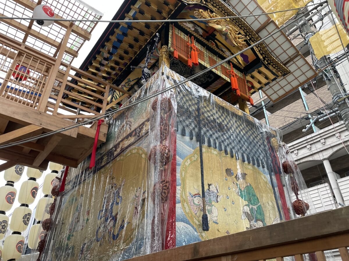 山鉾のタペストリーにはビニールが被さったままでしたし、ご神体や見送などが設置されていない状態ではありますが、人がまばらなのでどの山鉾もじっくり観察できます。