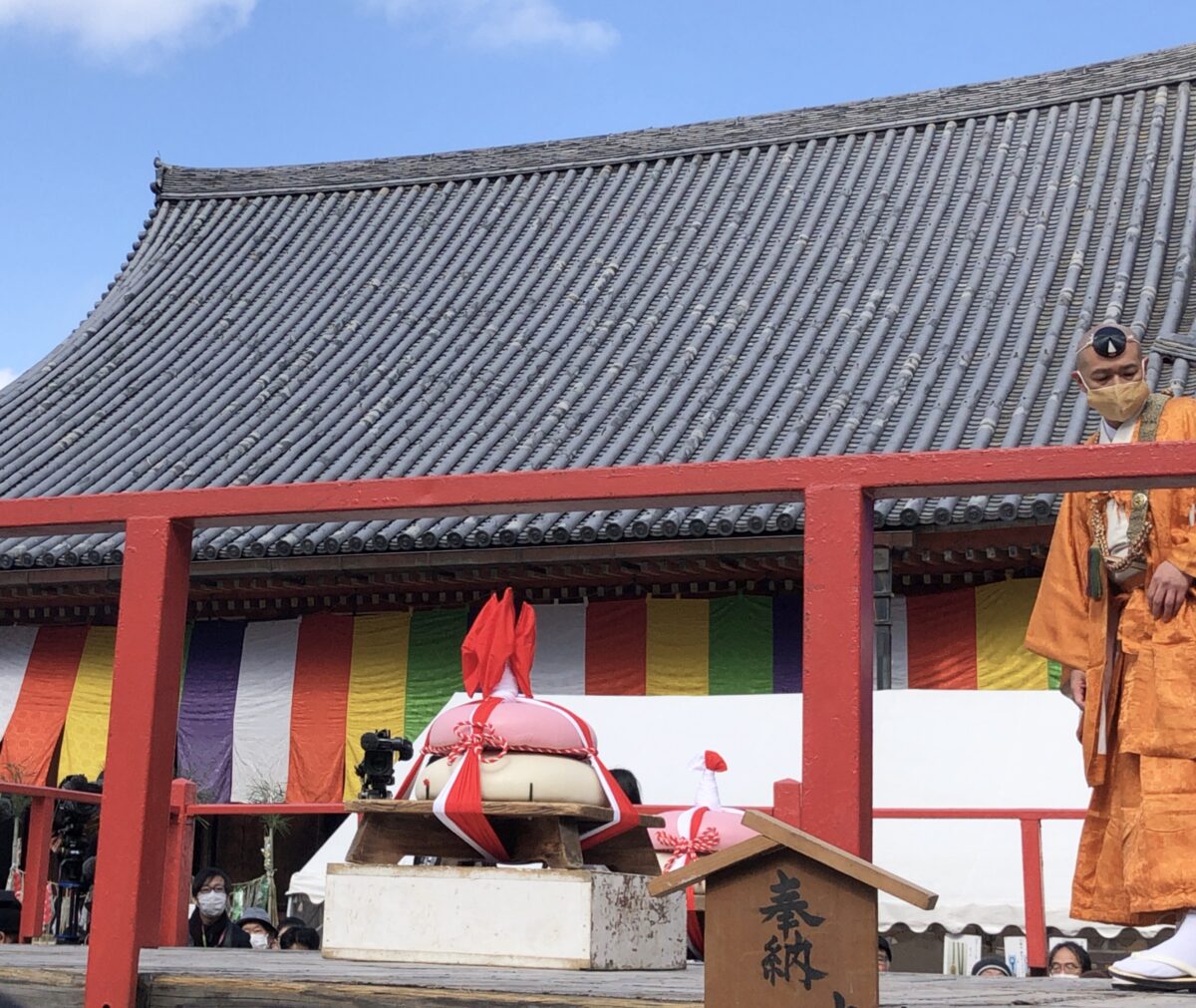 1つ目に、餅上げ力奉納で奉納するためには、事前登録が必要になりました。例年であれば、当日の飛び入り参加も受け付け。しかし2022年は、醍醐寺の公式サイトよりあらかじめ申し込みした人のみに変更となりました。