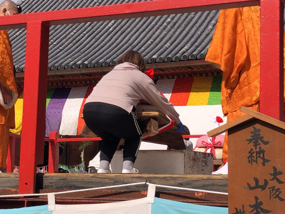 小柄な女性も奉納に参加する、その意気込みに参拝者みなから感動と祝福の拍手が巻き起こった