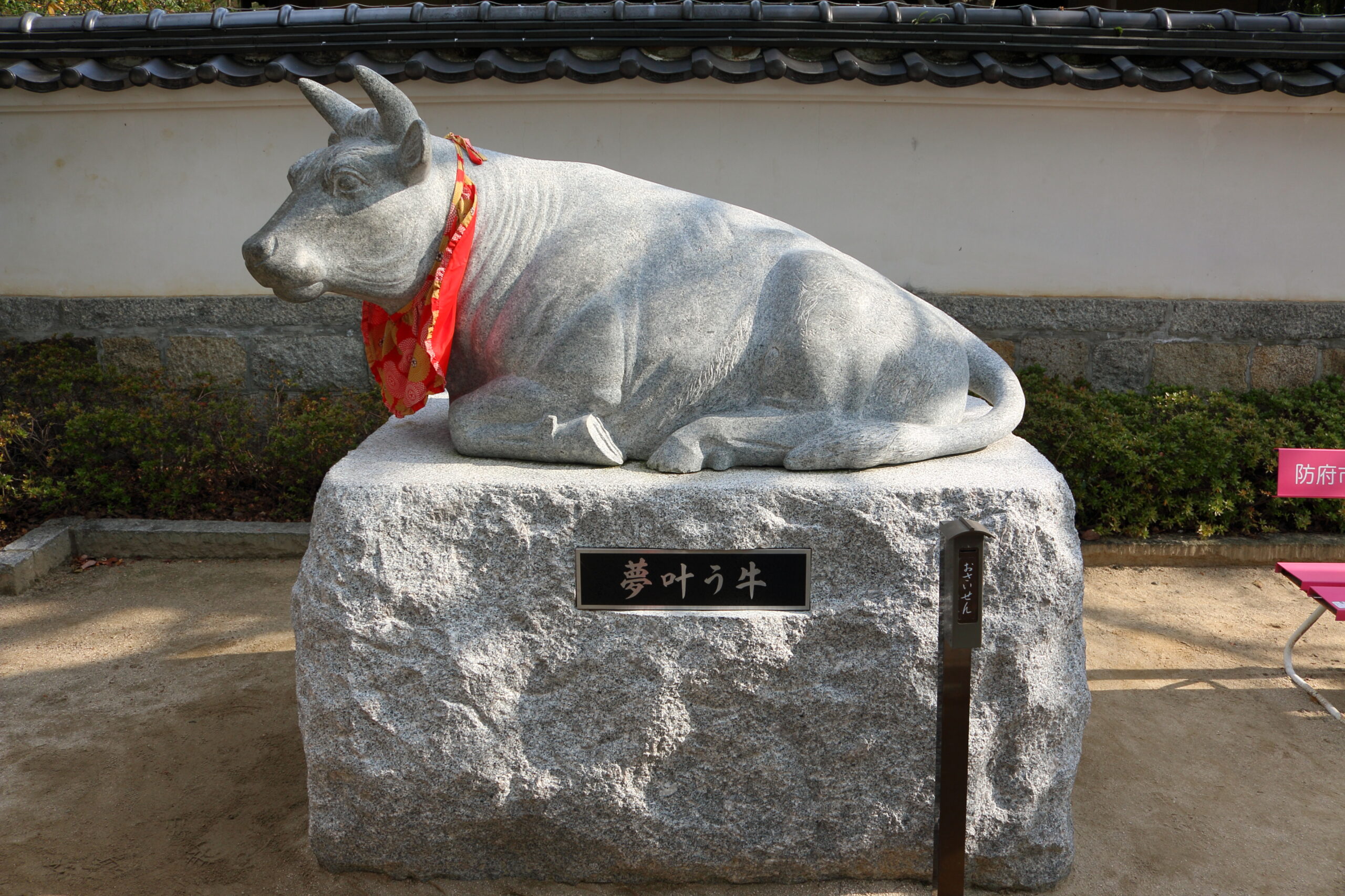 道真公を祀る神社に必ずといってよいほどあるのが「臥牛(ふせうし)」です。