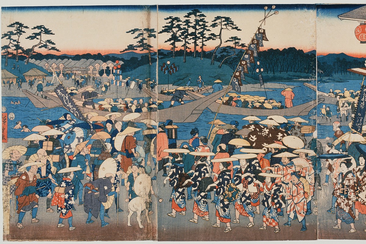 お伊勢参りに来た旅人で賑わう宮川の渡しの様子