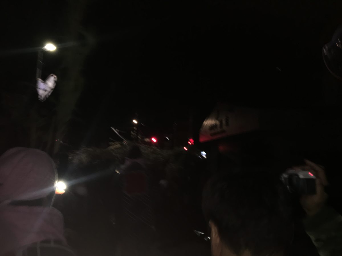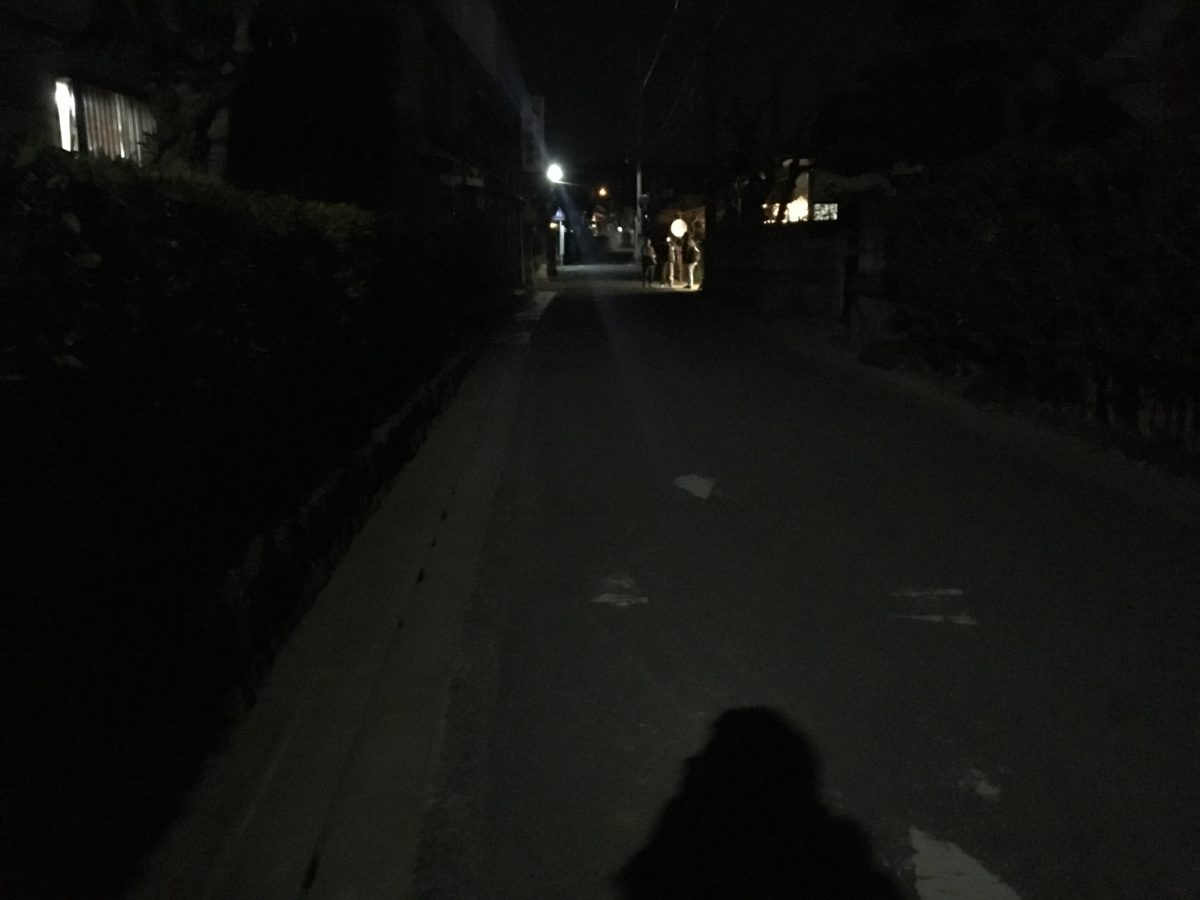 ところが、ここまで結構な明るさだった国道が比々田交差点につくなり真っ暗に。しかも周りにはお祭りの気配ゼロ。本当に今日行われるんだろうか…と少々不安になりながらも、ニュースリリースを信じてドキドキしながら進みます。