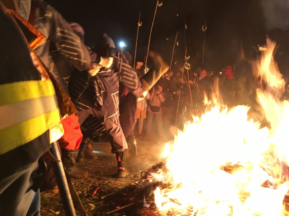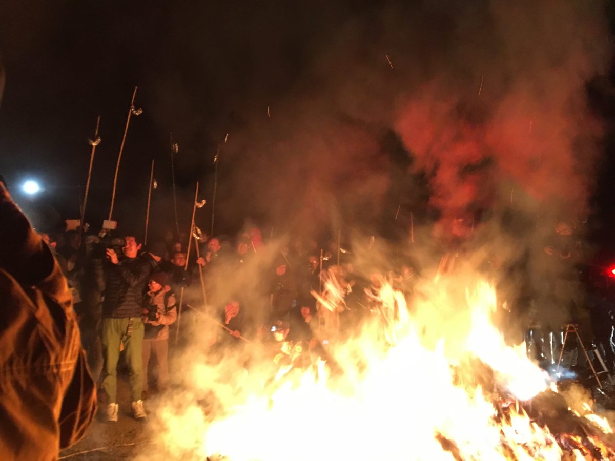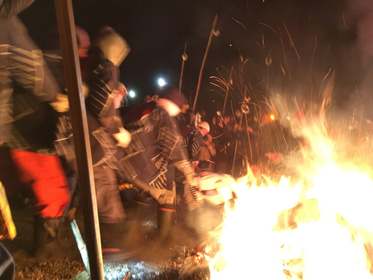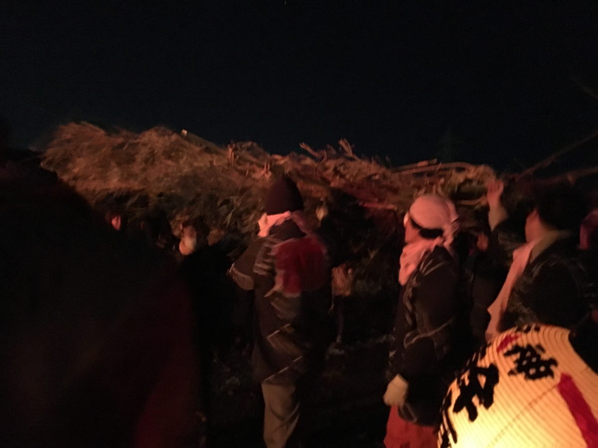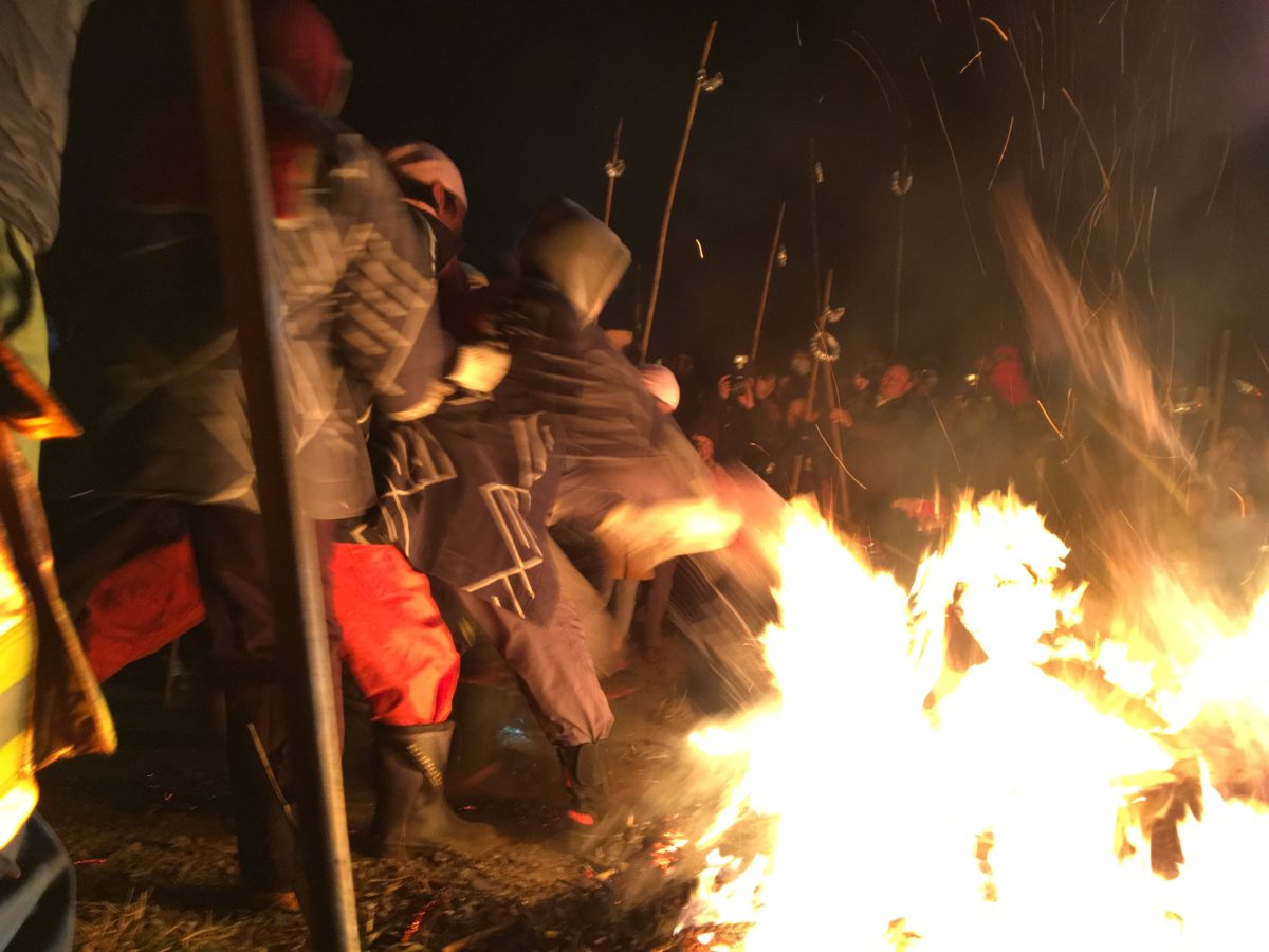 これが次から次へと繰り返されます。厄払いとはいえなんという荒業!ちなみに消防団は炎の近くに必ずいて、引きずり出した男衆の足に燃え盛る松などが絡みついてきた場合には