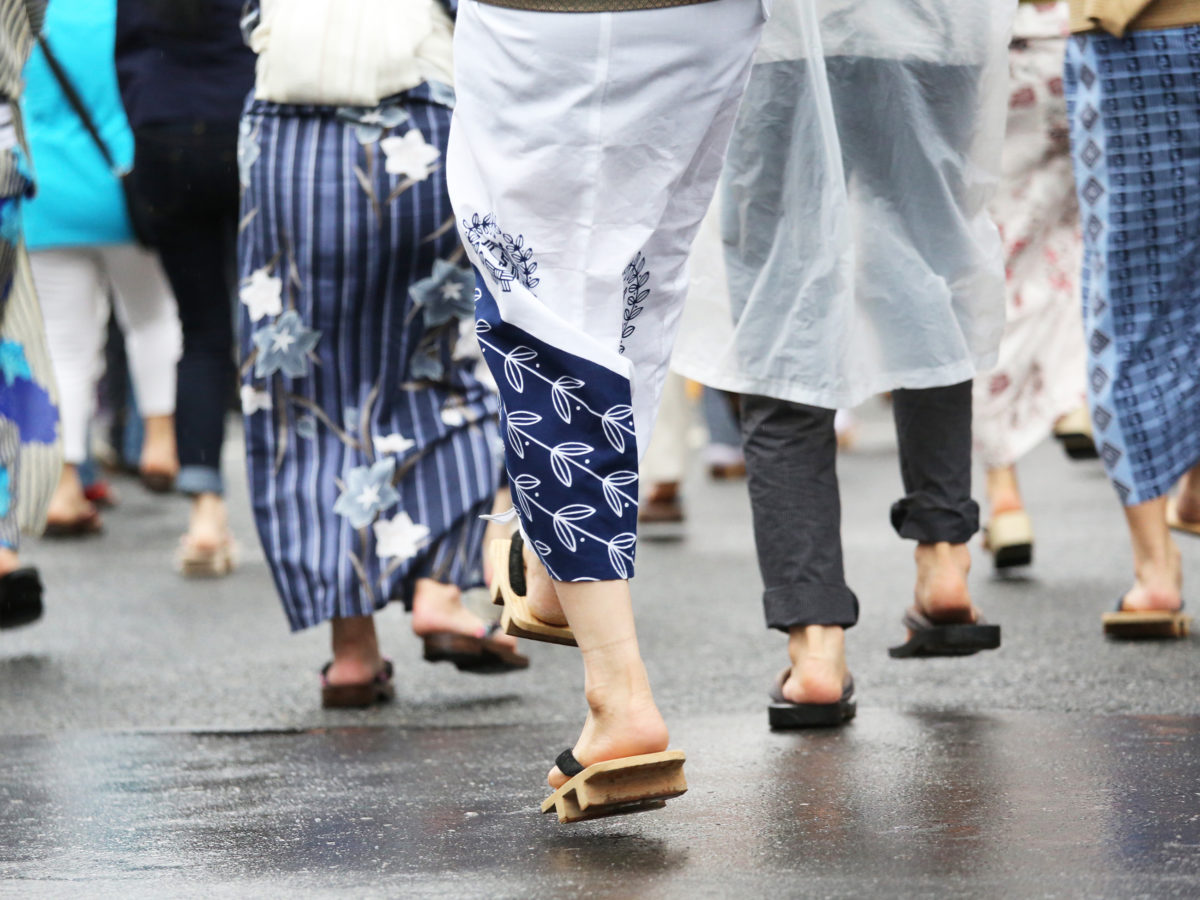 せっかくならば浴衣に着替えて踊ると気分も上がるのだが、何はなくとも下駄だけは用意すべきだ。郡上おどりは下駄で踊ることが前提となっており、下駄の歯を鳴らす動きや、摺り足をする踊りもある。何より靴や草履では踊り辛いし、雰囲気が出ないのだ。