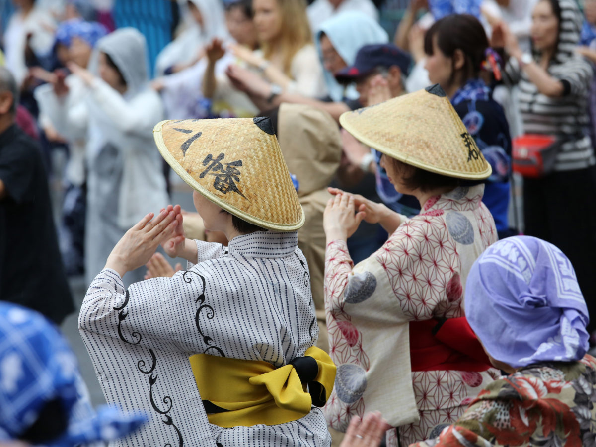 ただし、都内で一般的な桐の下駄は素材が柔らかく、踊りには適していない。現地では歯の減りにくいヒノキの下駄が一般で、踊り会場でも入手可能だ。ぜひ自分らしい一足を入手し、思う存分踊りに没頭したい。