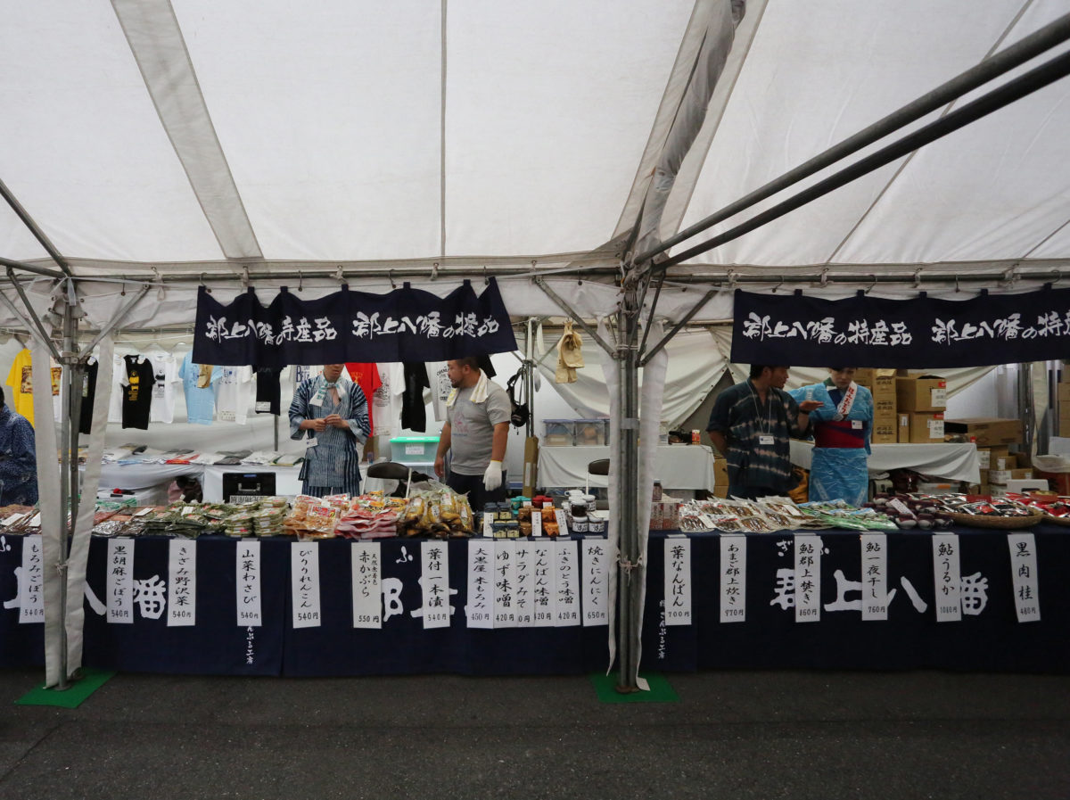 会場の物産展では、鮎の塩焼きをはじめ、郡上の名産品が一堂に会する