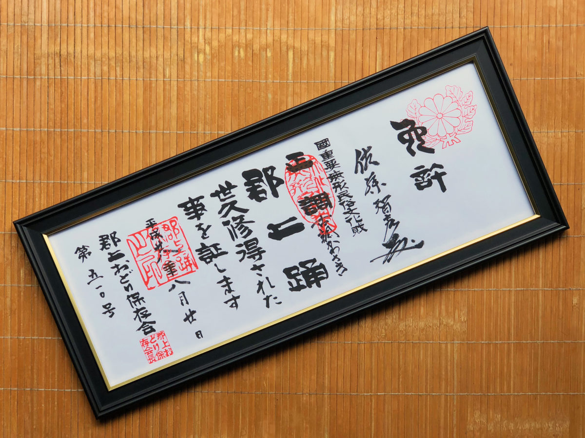 郡上おどりの免許状。写真は《古調かわさき》のもの