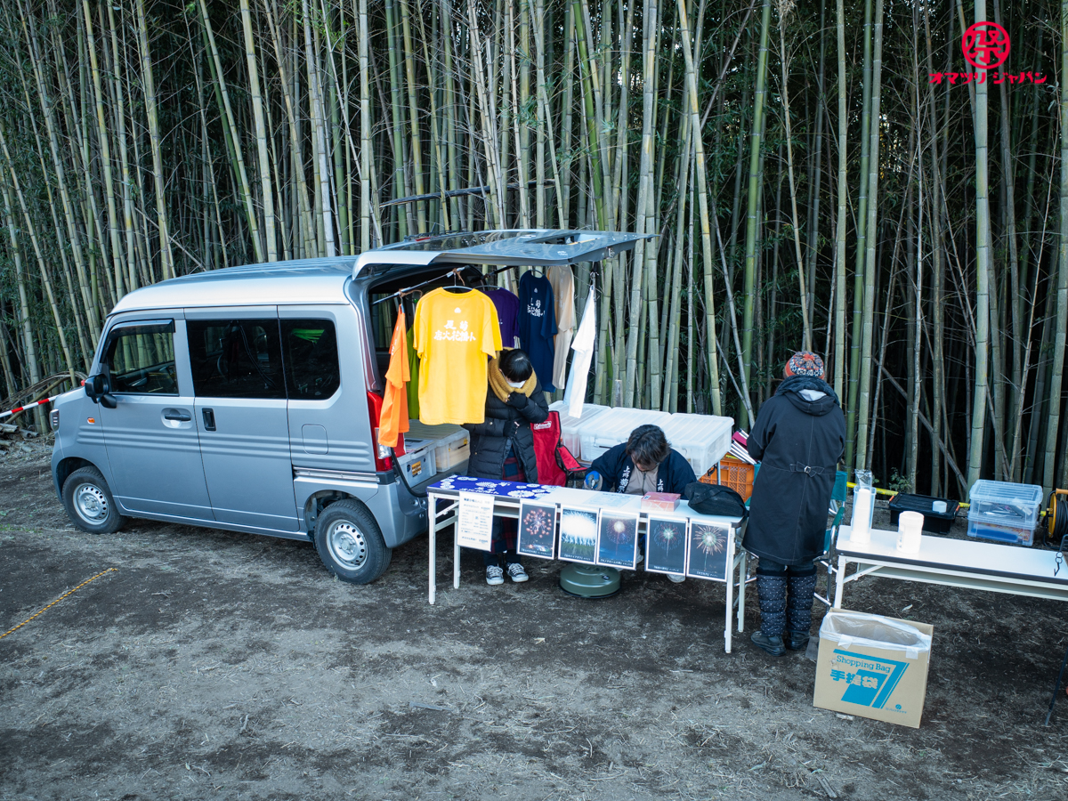 観覧席の後方では、打ち上げを担当する菊屋小幡花火店さんオリジナルTシャツの現地販売も。