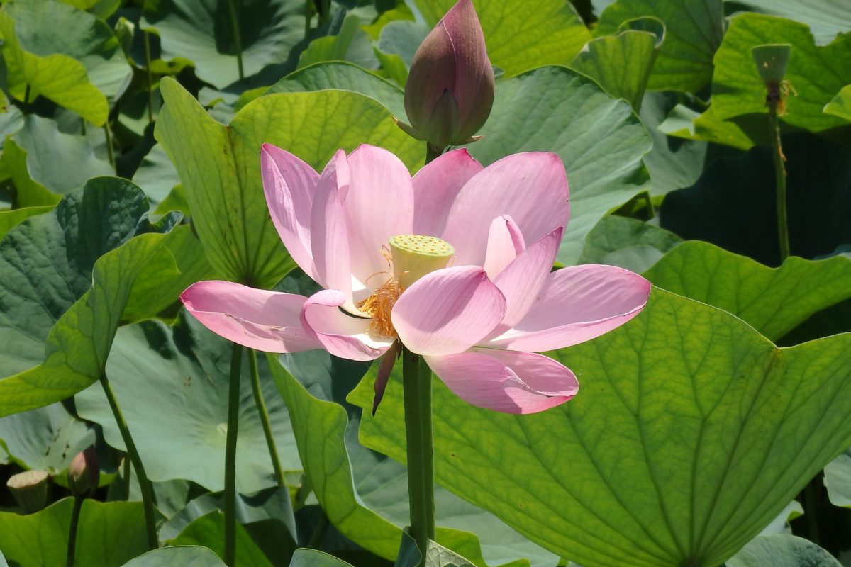 全国各地の遺跡では盛んに発掘調査が行われています。驚きの歴史が明かされる出土品が掘り出されることも珍しくありません。市内に数多くの古墳が点在する埼玉県行田市では意外なものが出土しました。蓮の種子が現れたのです。これを池に植えてみると発芽するばかりか、美しい花を咲かせたのです。これを記念して市内の古代蓮の自生する小針地区に1995年に「古代蓮の里」が開園しました。園内の蓮は例年7月上旬に開花し、「行田蓮まつり」が開催されています。2020年は7月5日を予定していましたが、新型コロナウイルス感染防止のため中止となりました。各種のイベントは全て行われませんが、ソーシャル・ディスタンスを保ちながら古代の花などを鑑賞することができます。