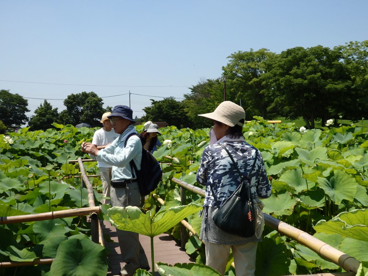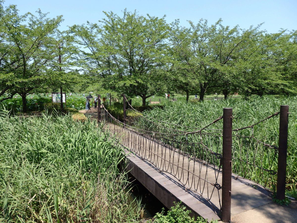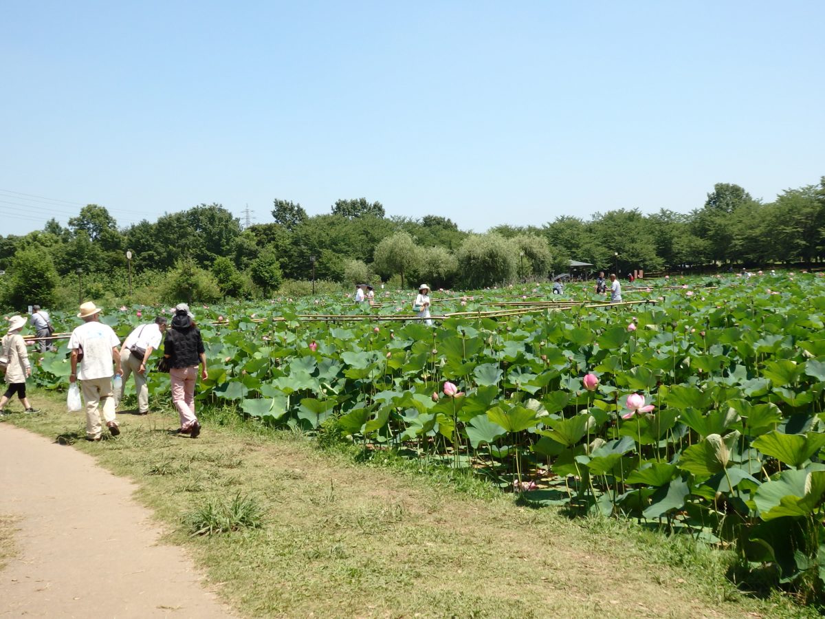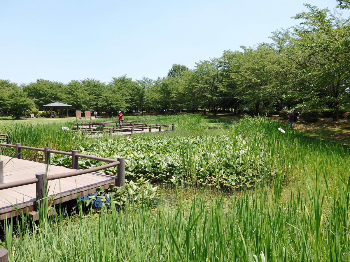 東京ドーム約3個分、約14ヘクタールの広大な敷地をもつ「古代蓮の里」には、古代蓮池の他にも水生植物園、水鳥の池、牡丹園、釣掘、冒険遊び場、見晴らしの丘、お花見広場、梅林、ロウバイ、ホタルの川などが設けられています。植物ばかりでなく、数多くの野鳥や昆虫の姿を見ることができ、季節感溢れる園内を歩くと、ハイキングをしているような気分が味わえます。