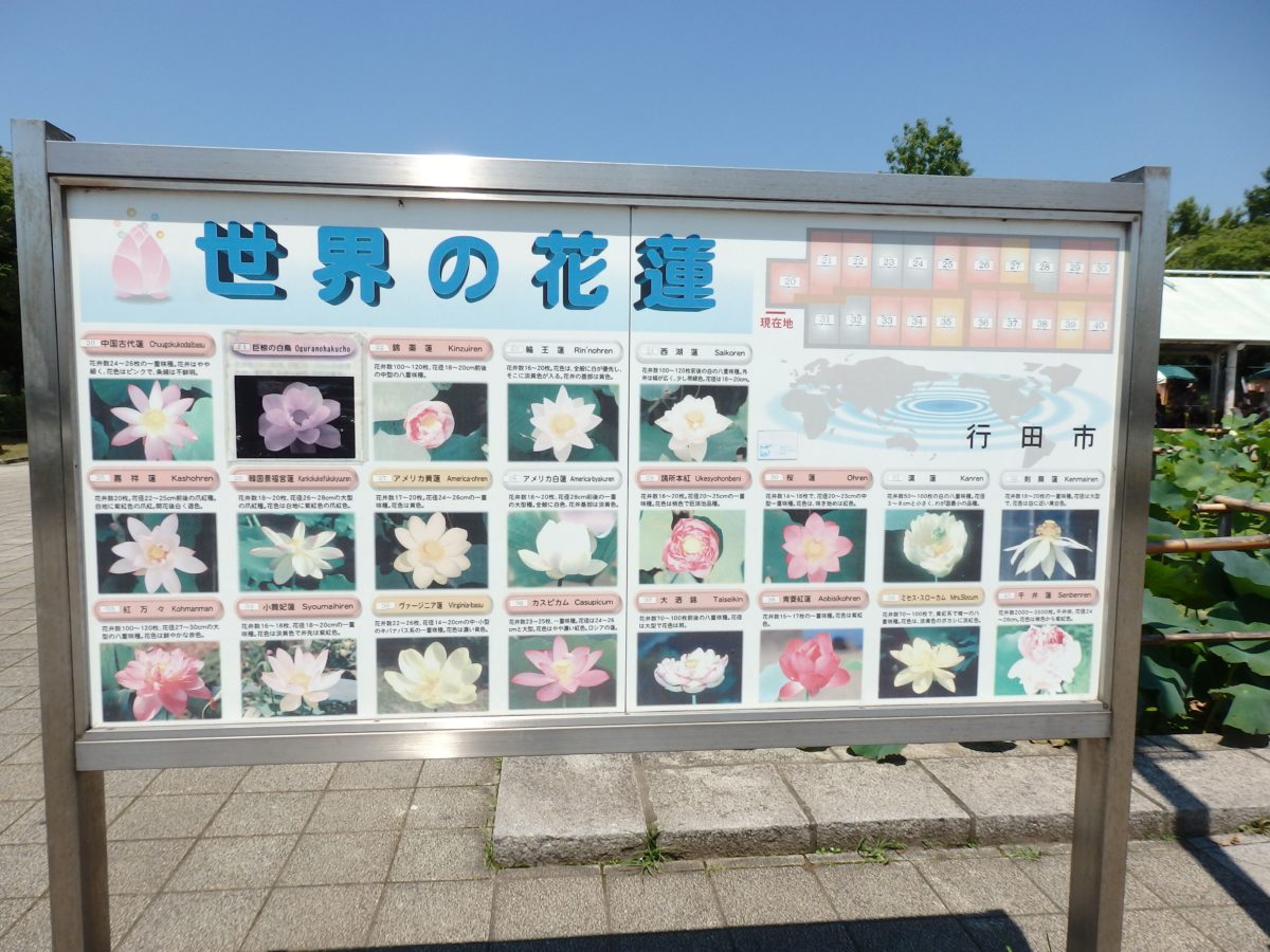 「古代蓮の里」南部の「世界の蓮園」の掲示