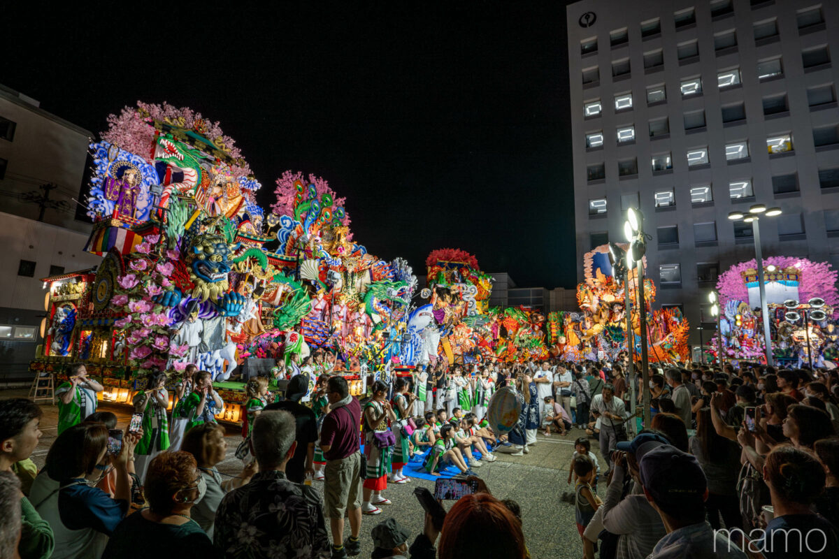 大小さまざまな27台の山車、古式ゆかしい神社行列、観客に向けてパフォーマンスを繰り広げる虎舞に、一糸乱れぬ歯打ちを披露する神楽。かつて城下町として栄えた中心街に、南部八戸ならではの豊かな表情と熱気が充満します。