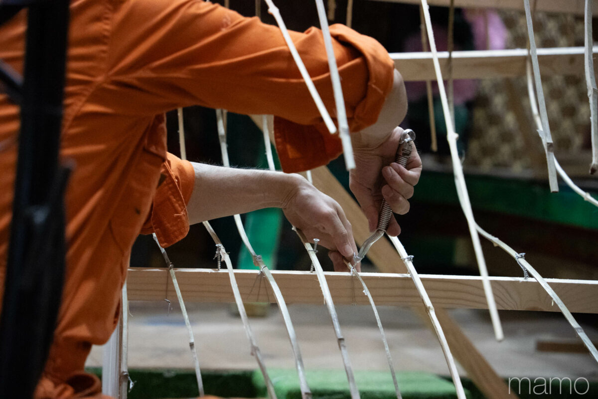 山車の「波」を制作する様子