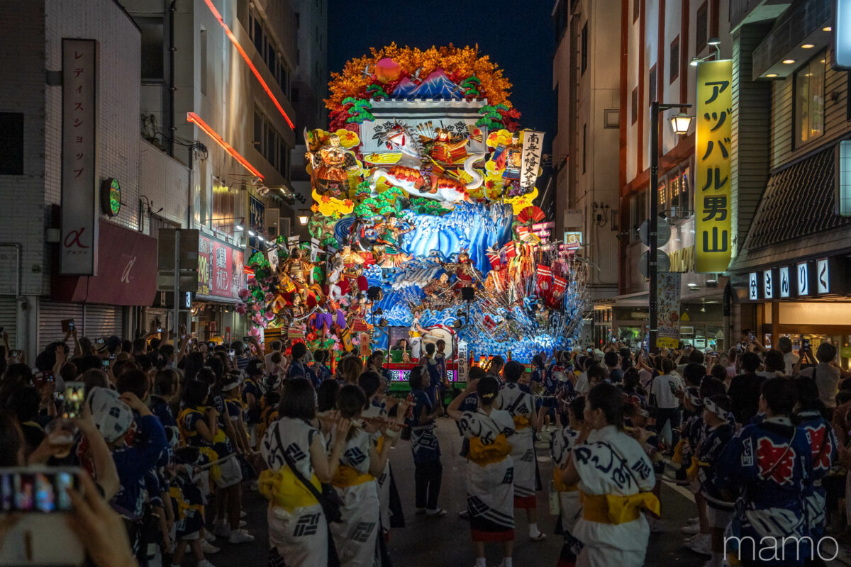 大小さまざまな27台の山車、古式ゆかしい神社行列、観客に向けてパフォーマンスを繰り広げる虎舞に、一糸乱れぬ歯打ちを披露する神楽。かつて城下町として栄えた中心街に、南部八戸ならではの豊かな表情と熱気が充満します。