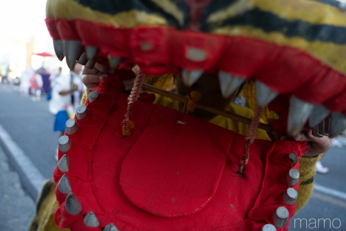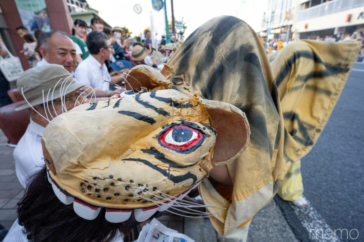 主に東北地方の太平洋側で伝わる虎舞。八戸では沿道の観客に「かぶりつく」パフォーマンスが名物。