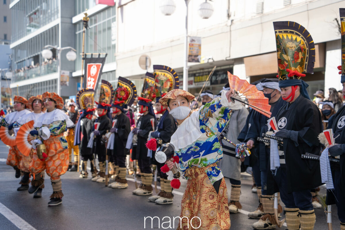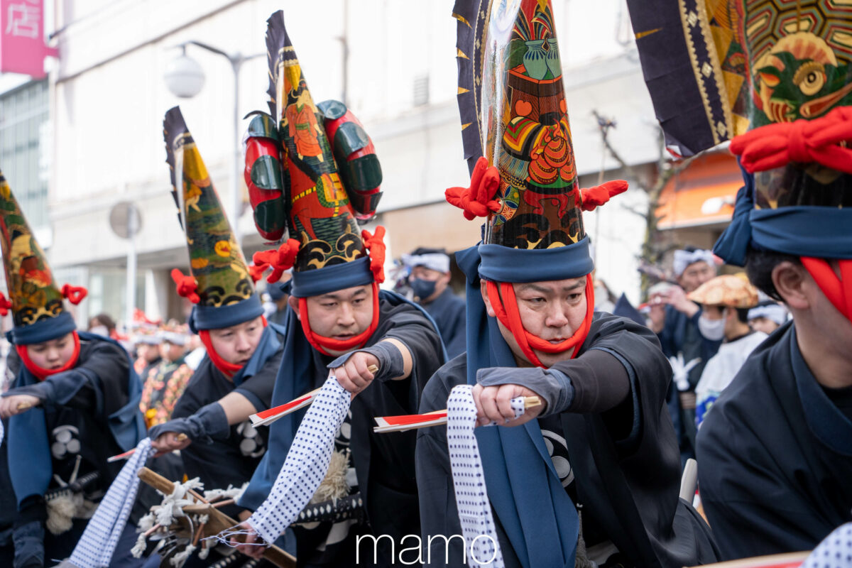 凍てつく空気に包まれた八戸がほんのり熱くなる4日間。農民に扮した「南部衆」が集い、真っ白になった街を舞と囃子で彩っていく・・・そして夏の「八戸三社大祭」へと向かって季節の歯車が動き始めます。