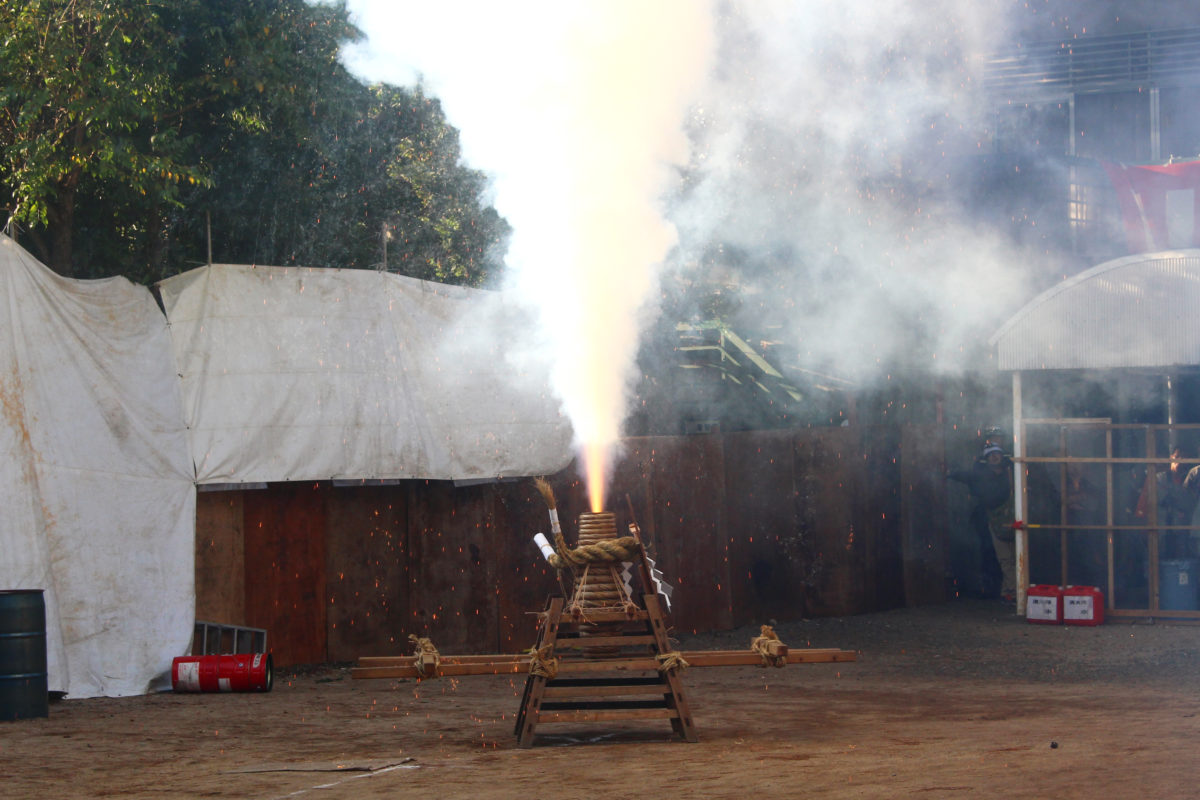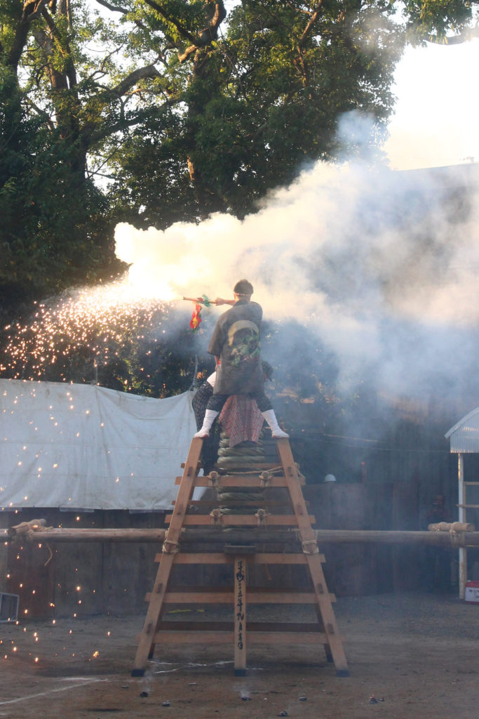 次は手筒花火の持ちはじめと持ち上げ後を、2枚続けてどうぞ!