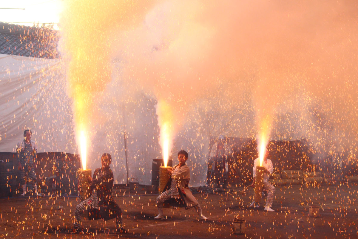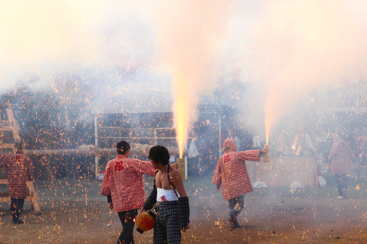 手筒花火の見どころの一つに、花火が終わる瞬間があります。ボンっと言う大きな音と共に、下に火が抜ける瞬間をご注目ください!